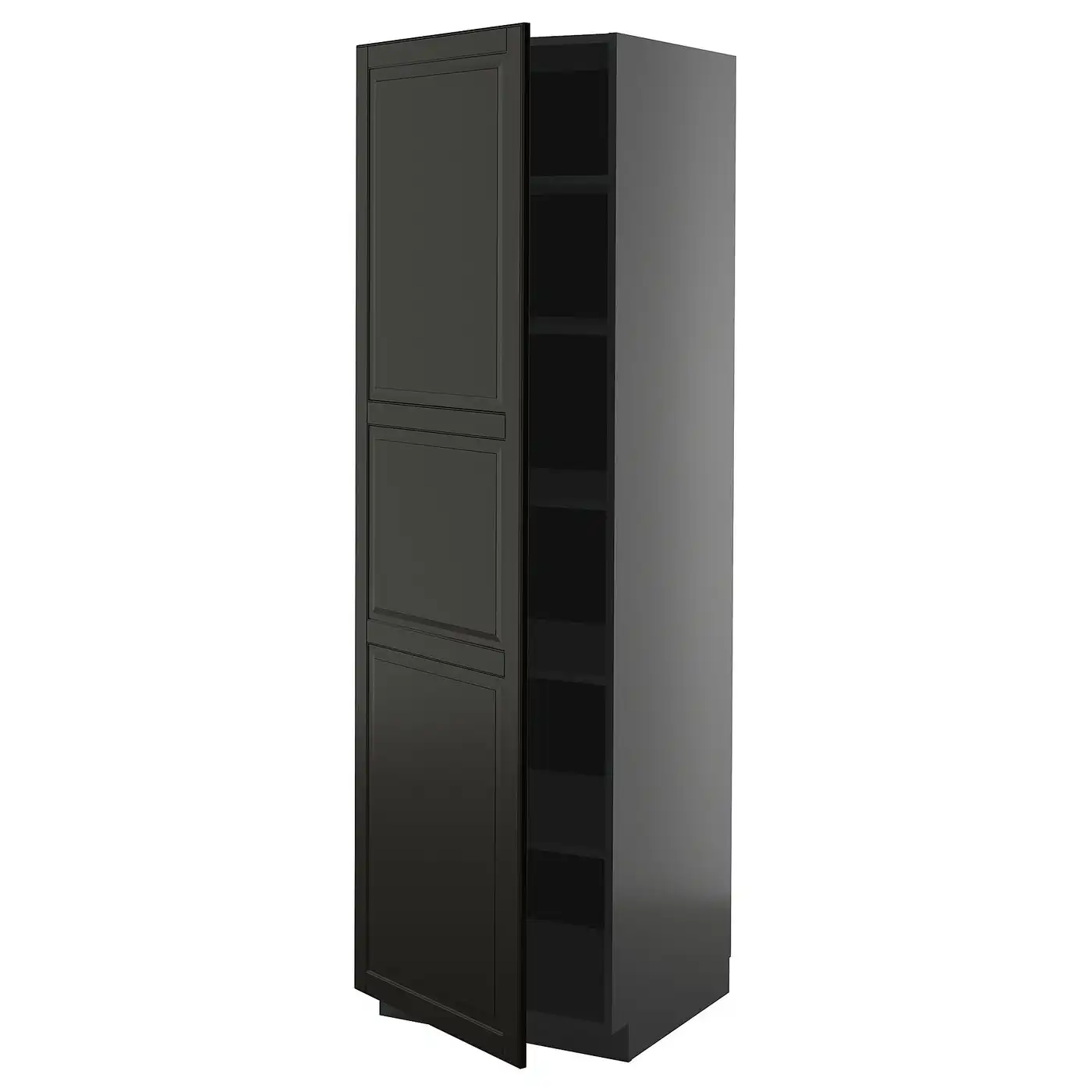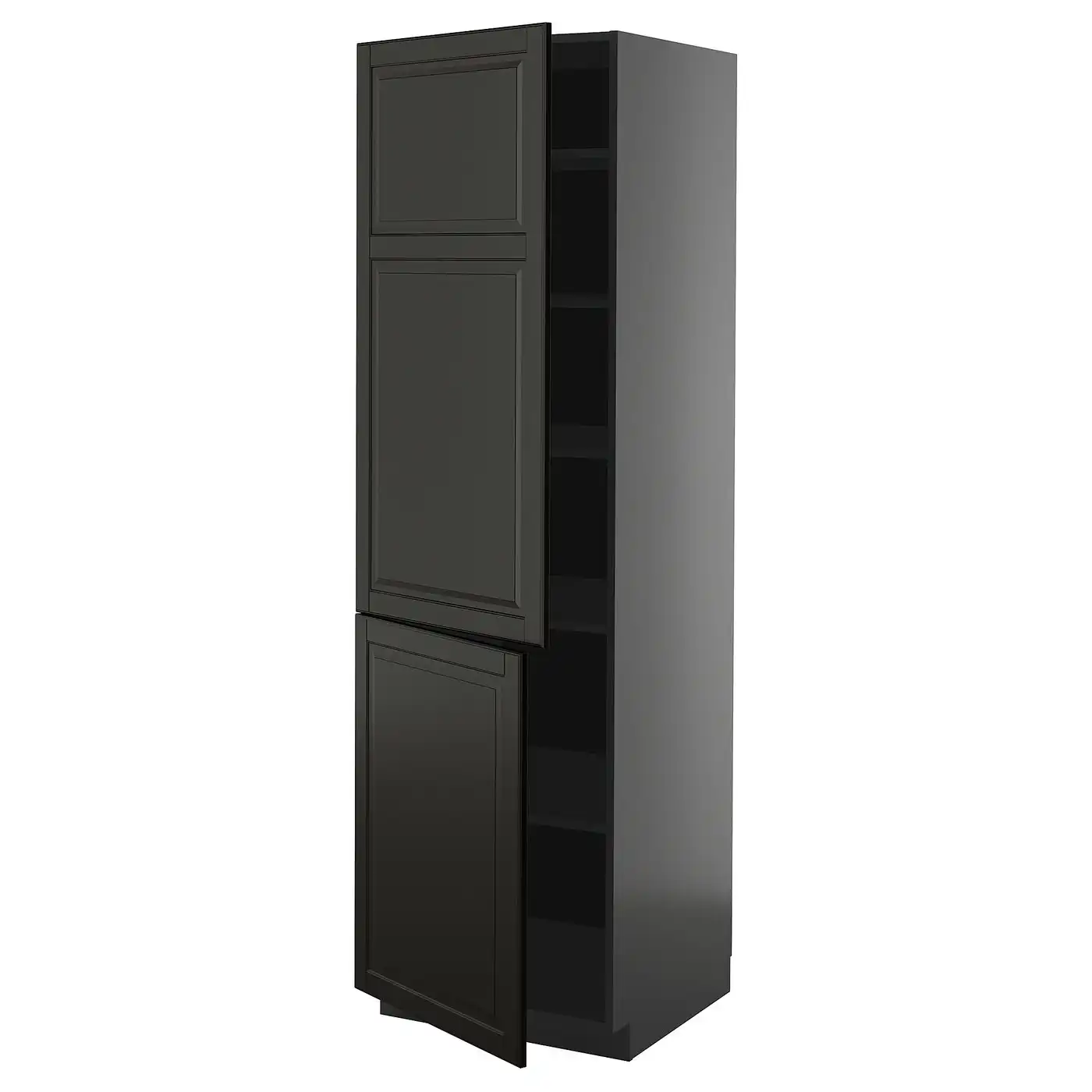 METOD High cabinet with shelves - black-grey/Bodbyn black 60x60x200 cm