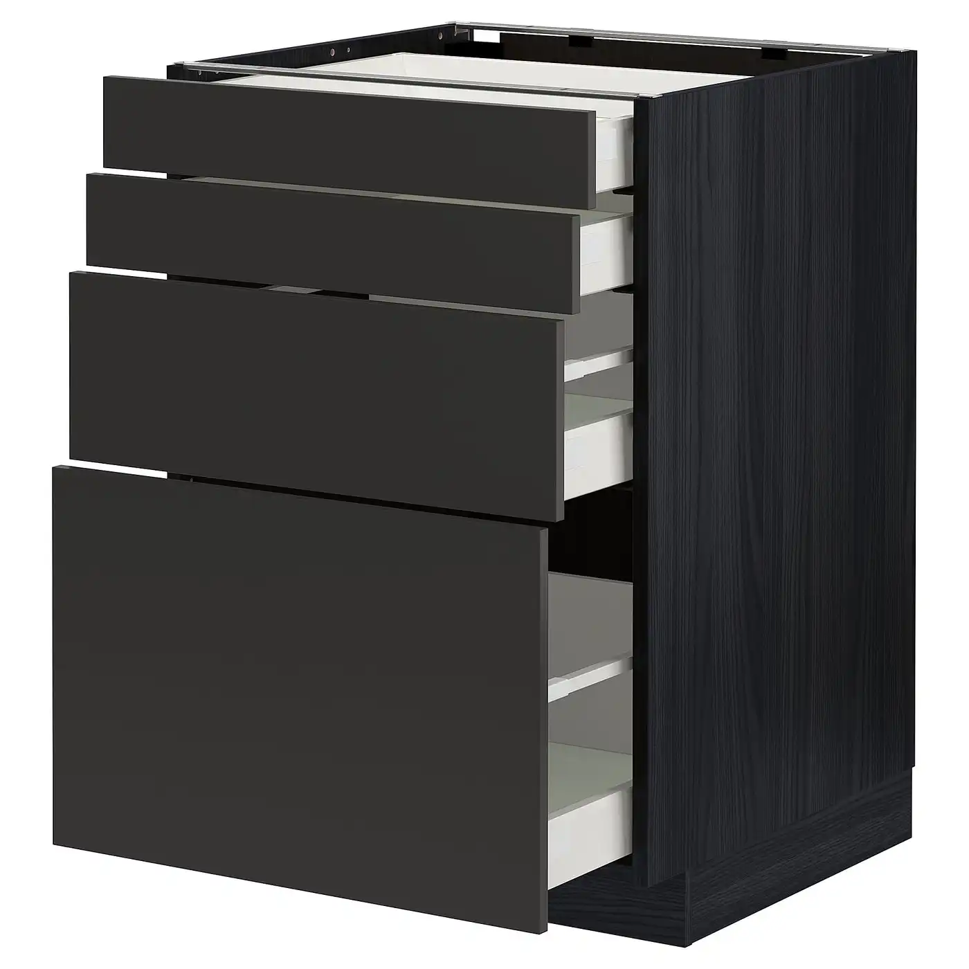 IKEA METOD Base cabinet with 4 drawers 60x60 cm MAXIMERA black/Nickebo matt anthracite