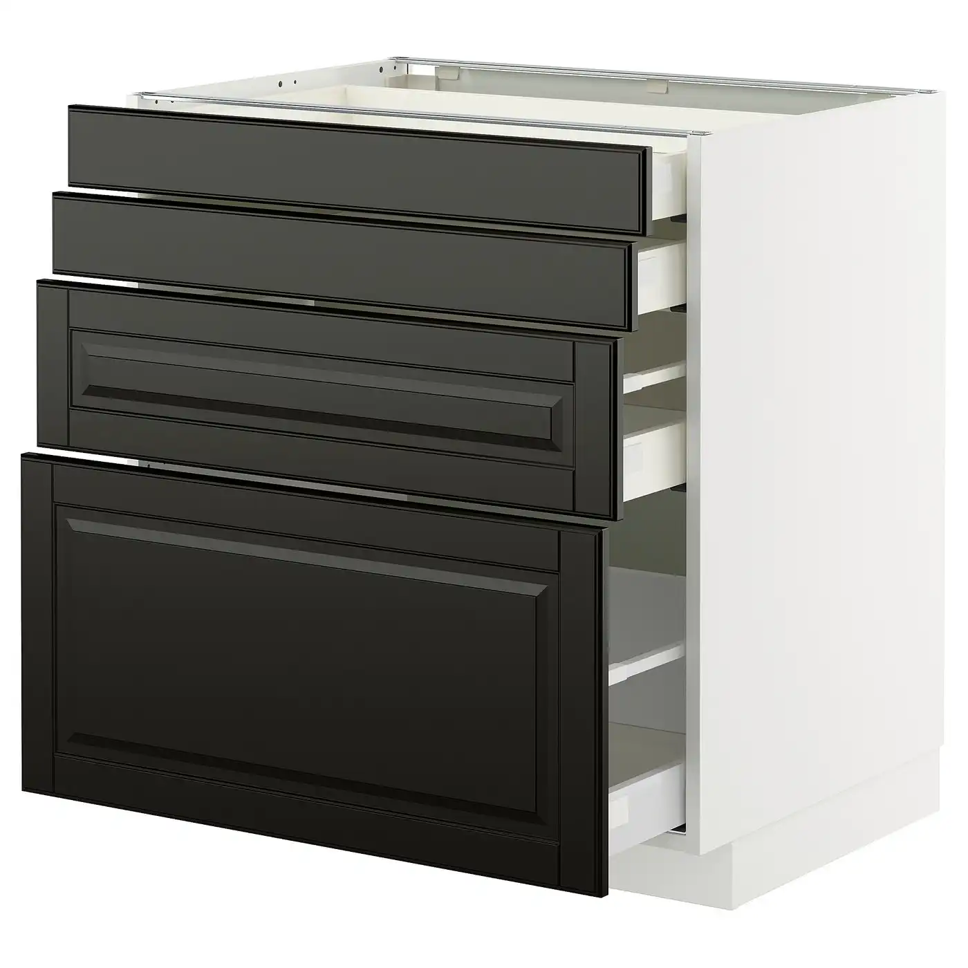 IKEA METOD Base cabinet with 4 drawers 80x60 cm MAXIMERA white/BODBYN black