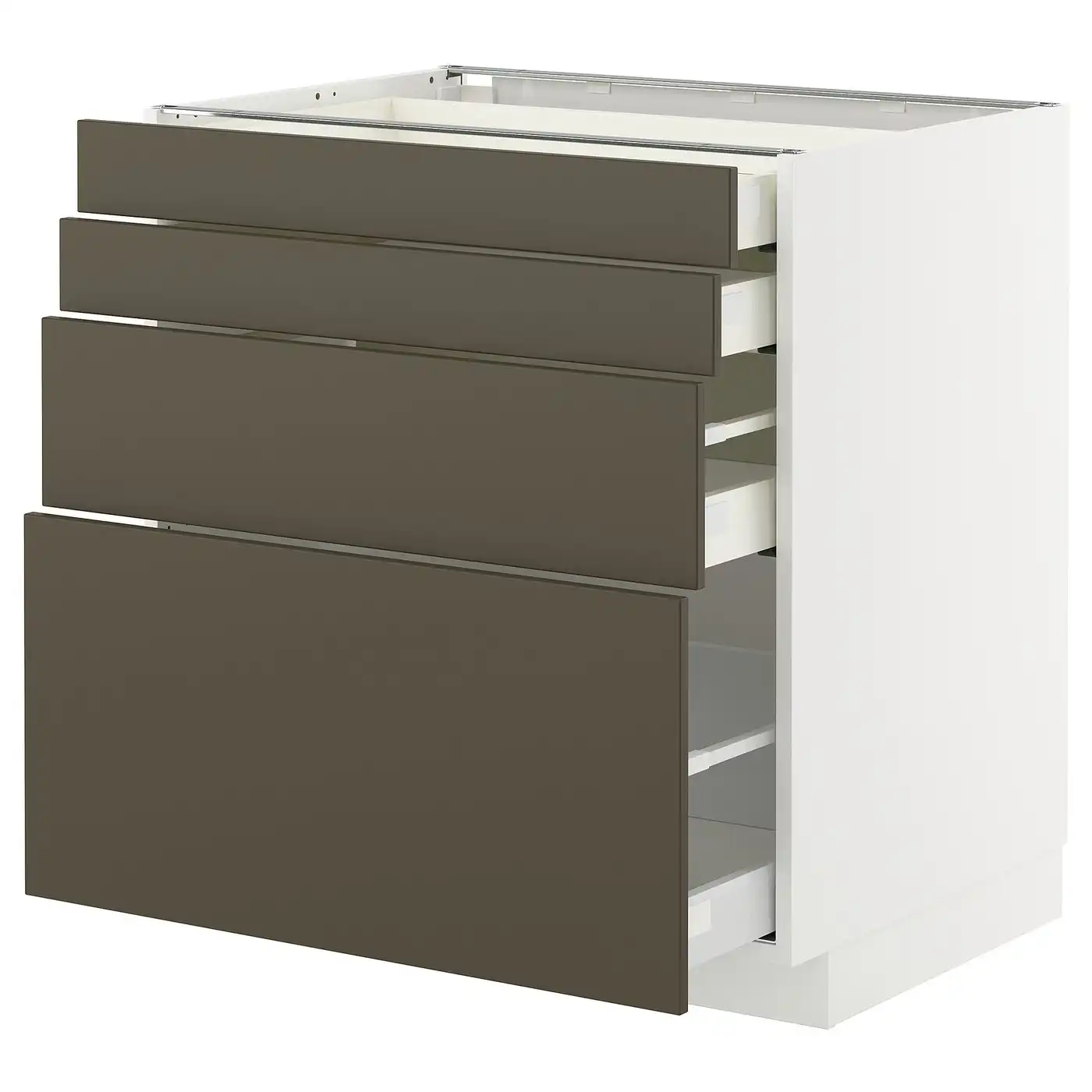 IKEA METOD Base cabinet with 4 drawers 80x60 cm MAXIMERA white/HAVSTORP brown-beige