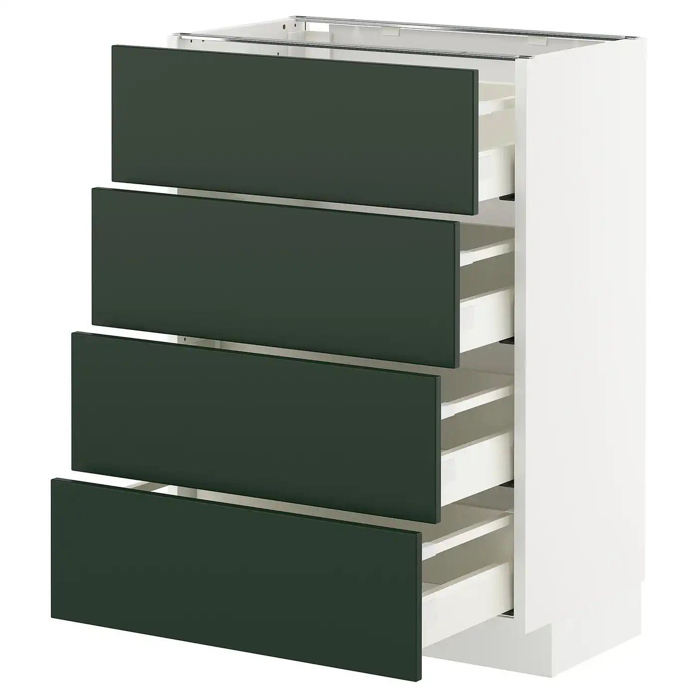 IKEA METOD Base cabinet with 4 drawers 60x37 cm MAXIMERA white/HAVSTORP deep green