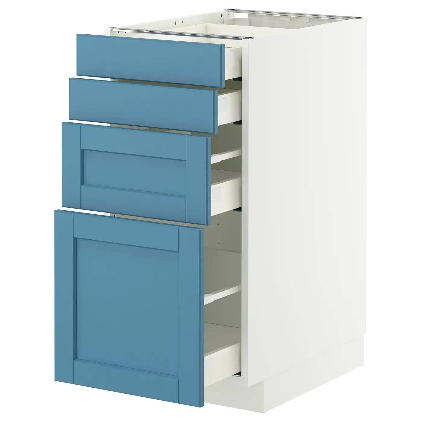 IKEA METOD Base cabinet with 4 fronts and 4 drawers 40x60 cm MAXIMERA white/LERHYTTAN blue