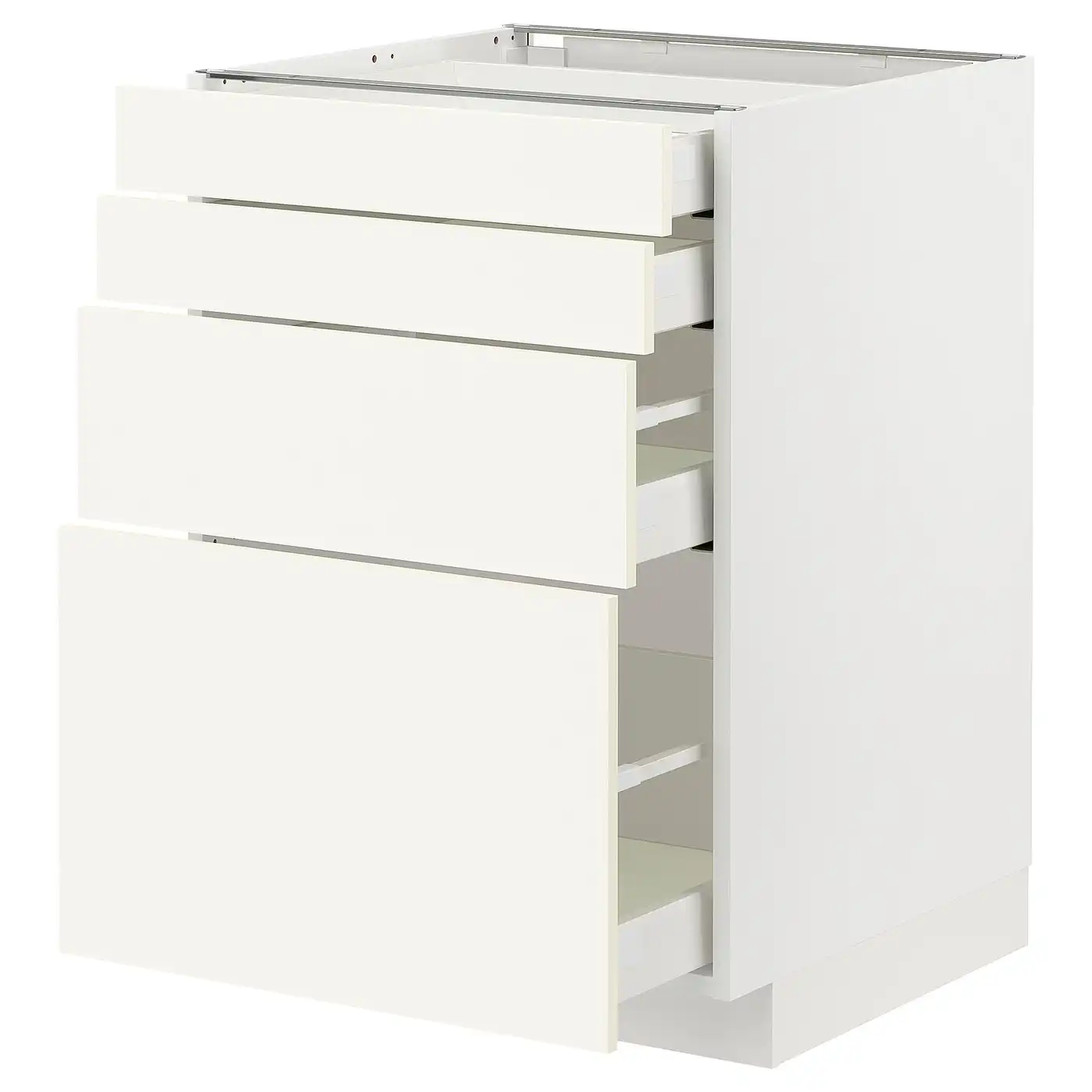 IKEA METOD Base cabinet with 4 fronts and 4 drawers 60x60 cm MAXIMERA white/VALLSTENA white
