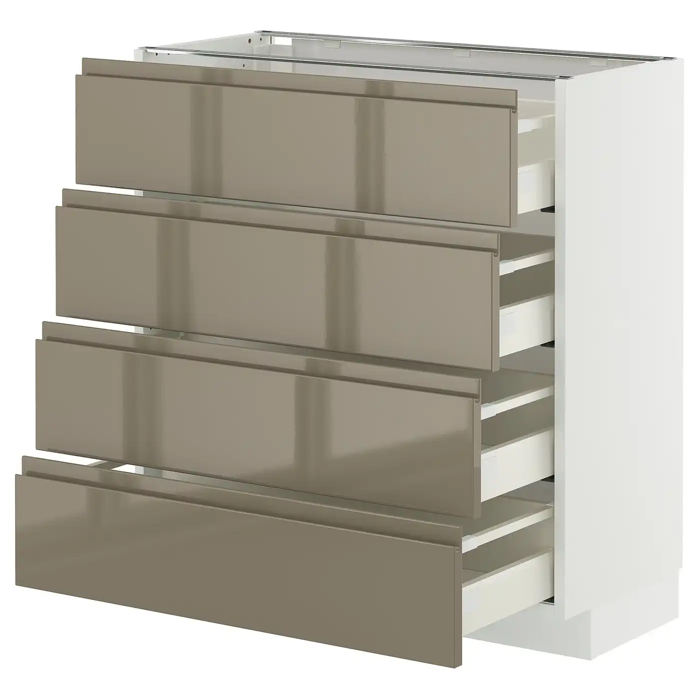 METOD / MAXIMERA Base cab 4 frnts/4 drawers - white/Voxtorp high-gloss dark grey-brown 80x37 cm
