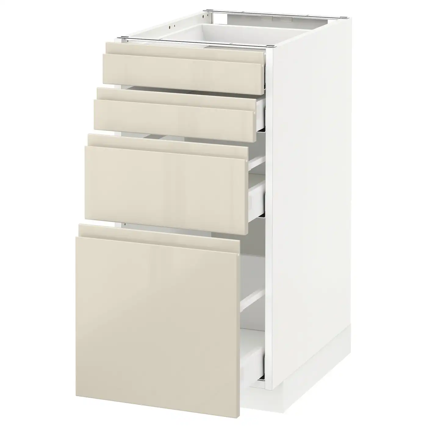 METOD / MAXIMERA Base cab 4 frnts/4 drawers - white/Voxtorp high-gloss light beige 40x60 cm