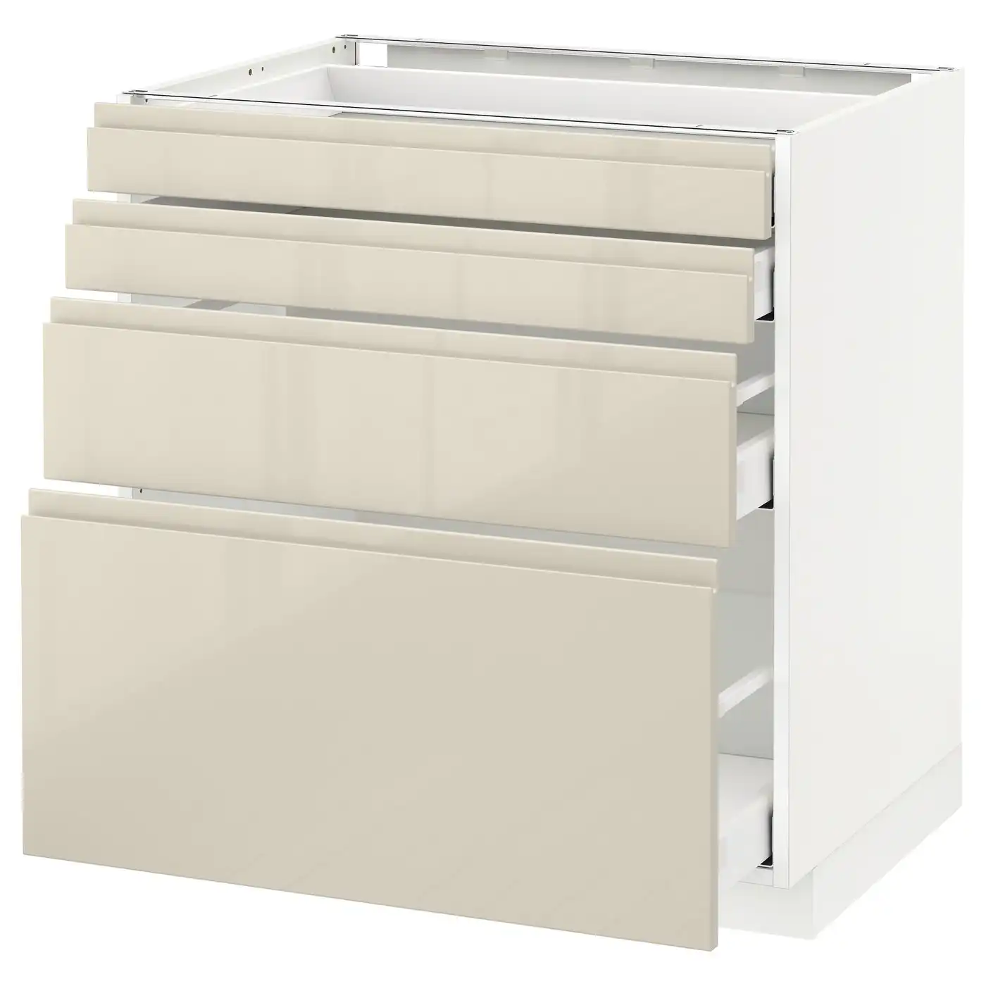 METOD / MAXIMERA Base cab 4 frnts/4 drawers - white/Voxtorp high-gloss light beige 80x60 cm — Price History & Tracker | DeserTracker