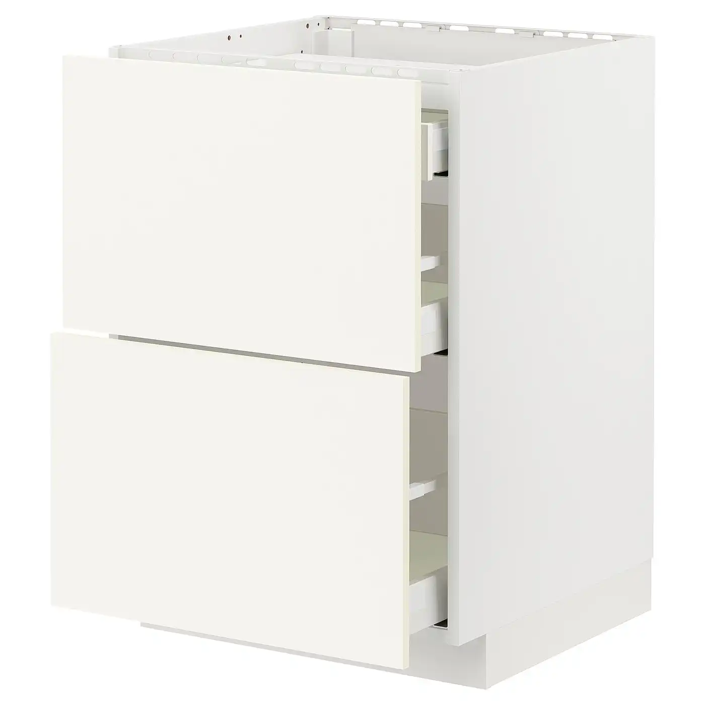 METOD / MAXIMERA Base cab f hob/2 fronts/3 drawers - white/Vallstena white 60x60 cm