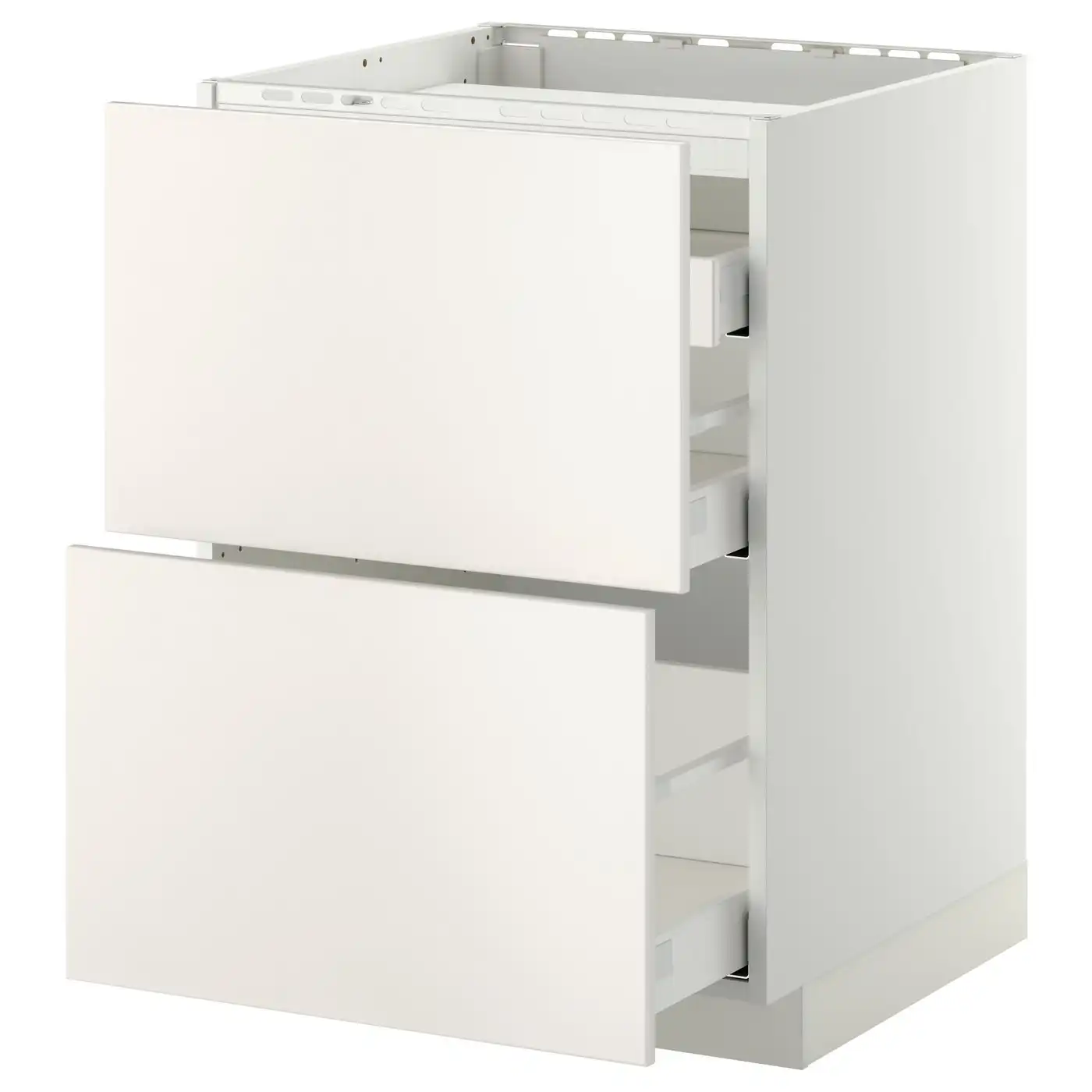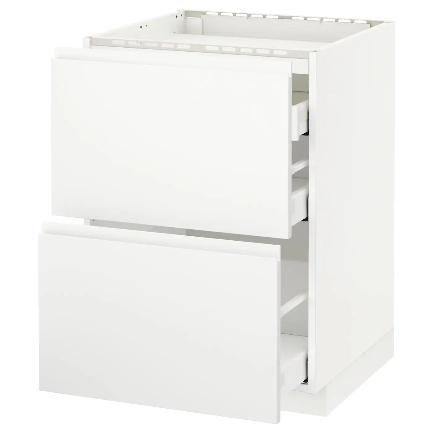 METOD / MAXIMERA Base cab f hob/2 fronts/3 drawers - white/Voxtorp matt white 60x60 cm