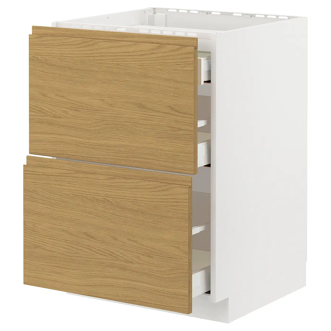 METOD / MAXIMERA Base cab f hob/2 fronts/3 drawers - white/Vedhamn oak 60x60 cm