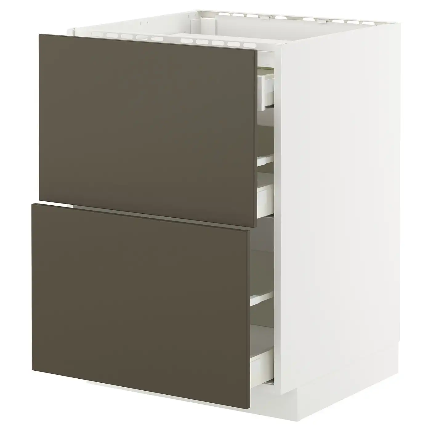 METOD / MAXIMERA Base cab f hob/2 fronts/3 drawers - white/Sinarp brown 60x60 cm
