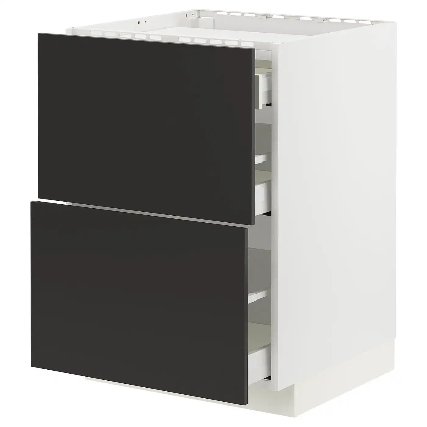 METOD / MAXIMERA Base cab f hob/2 fronts/3 drawers - white/Nickebo matt anthracite 60x60 cm
