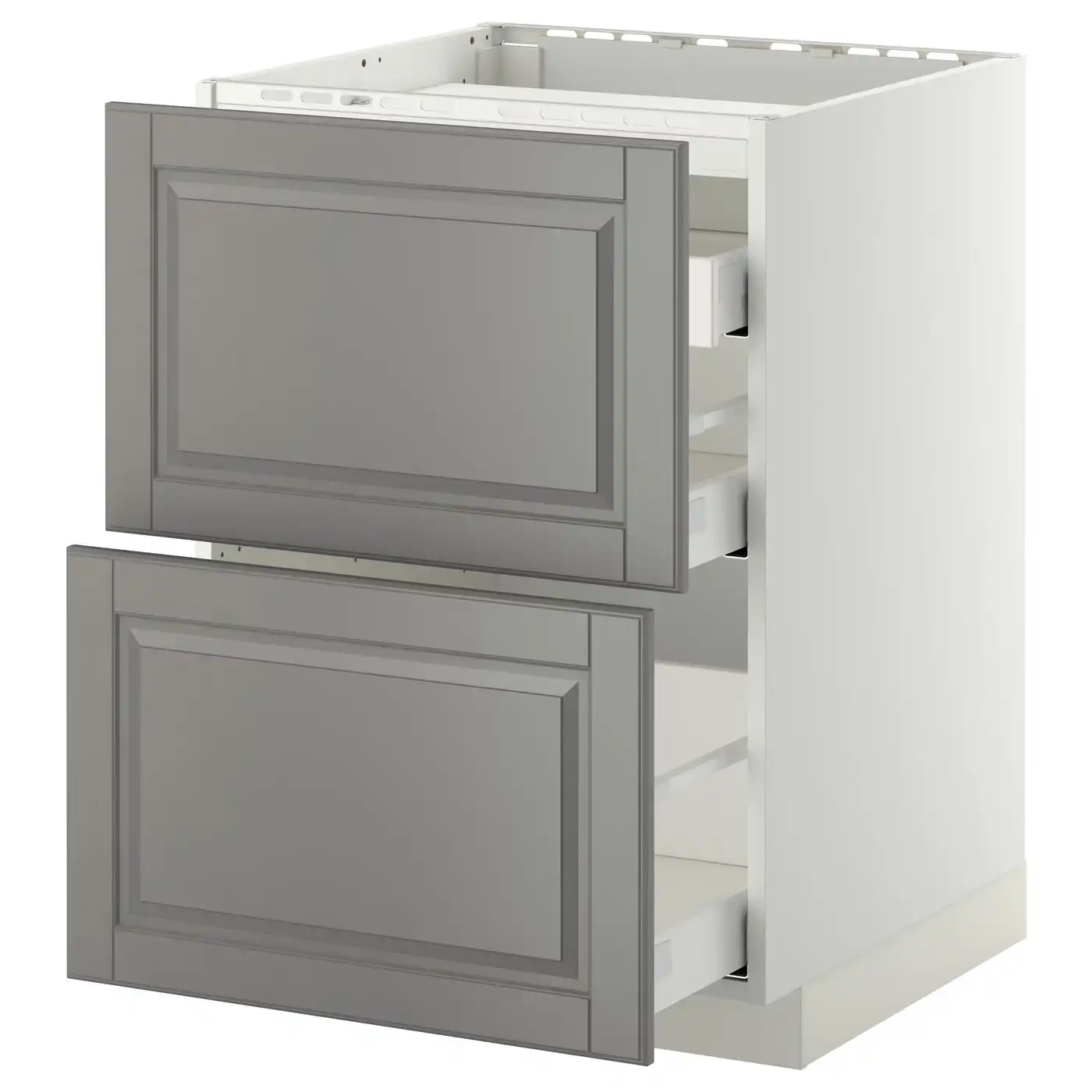 METOD / MAXIMERA Base cab f hob/2 fronts/3 drawers - white/Bodbyn grey 60x60 cm