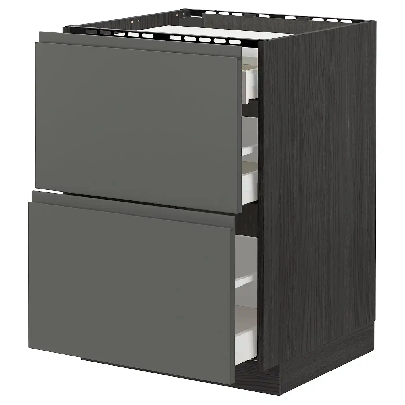 METOD / MAXIMERA Base cab f hob/2 fronts/3 drawers - black/Voxtorp dark grey 60x60 cm