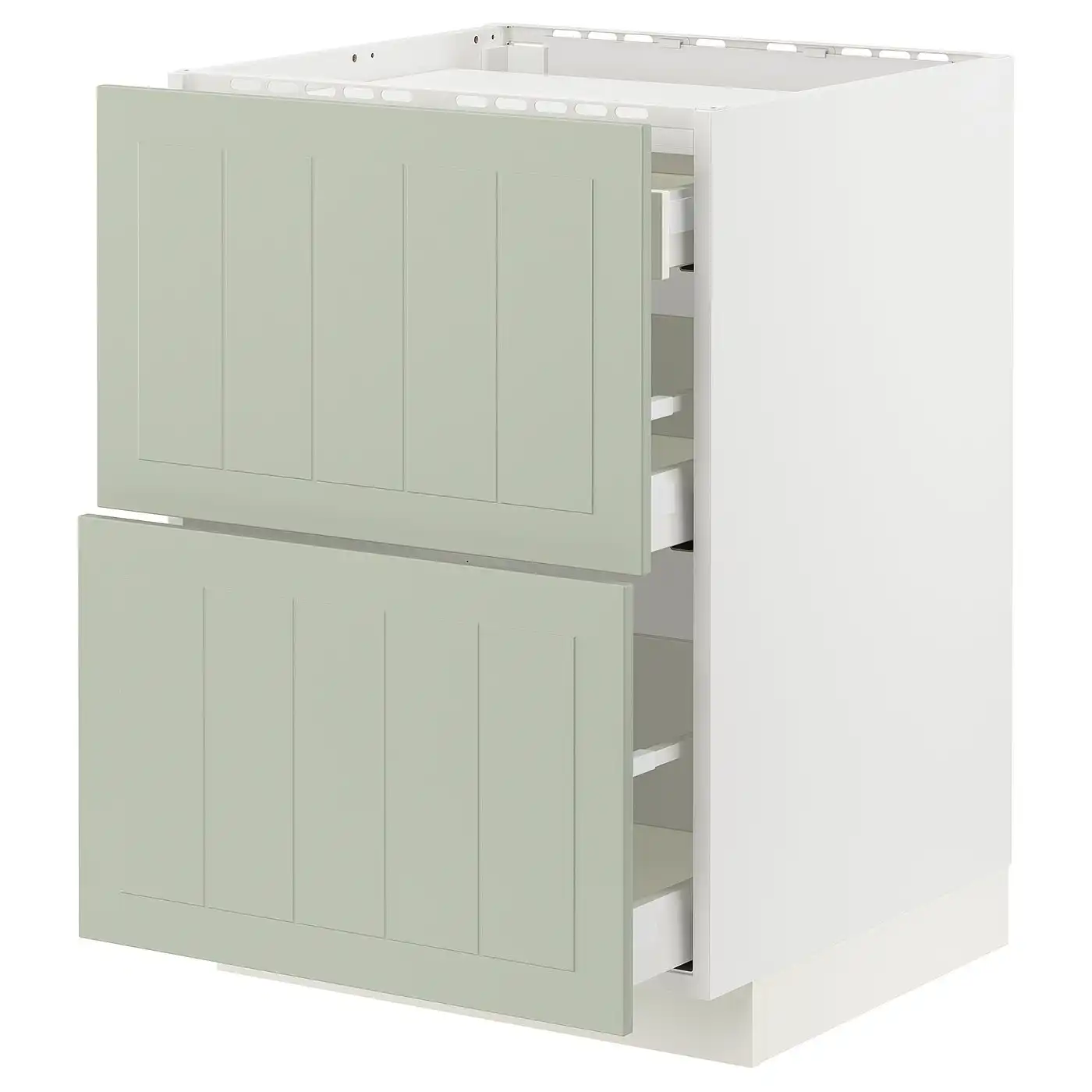 METOD / MAXIMERA Base cab f hob/2 fronts/3 drawers - white/Stensund light green 60x60 cm