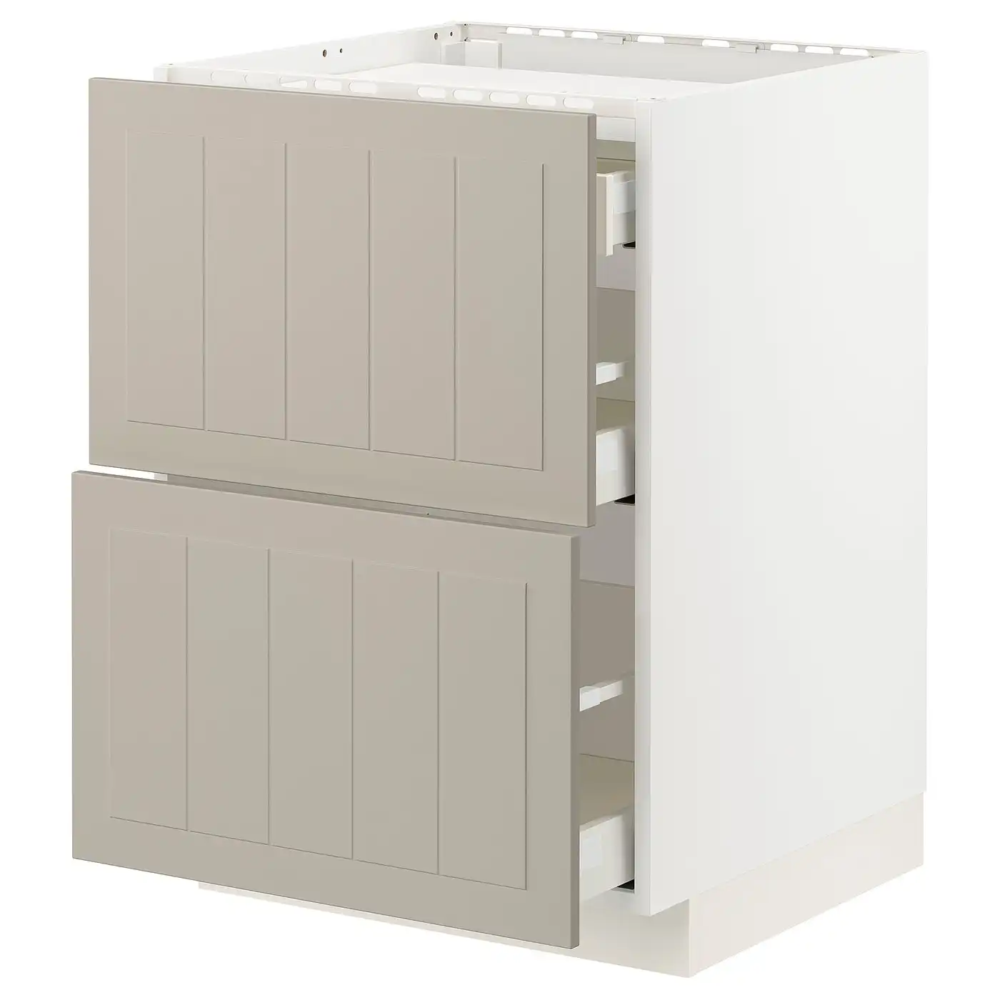 METOD / MAXIMERA Base cab f hob/2 fronts/3 drawers - white/Stensund beige 60x60 cm