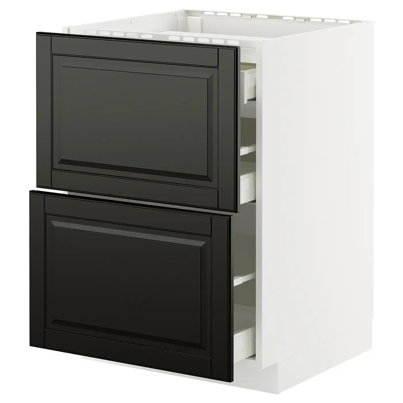 METOD / MAXIMERA Base cab f hob/2 fronts/3 drawers - white/Bodbyn black 60x60 cm