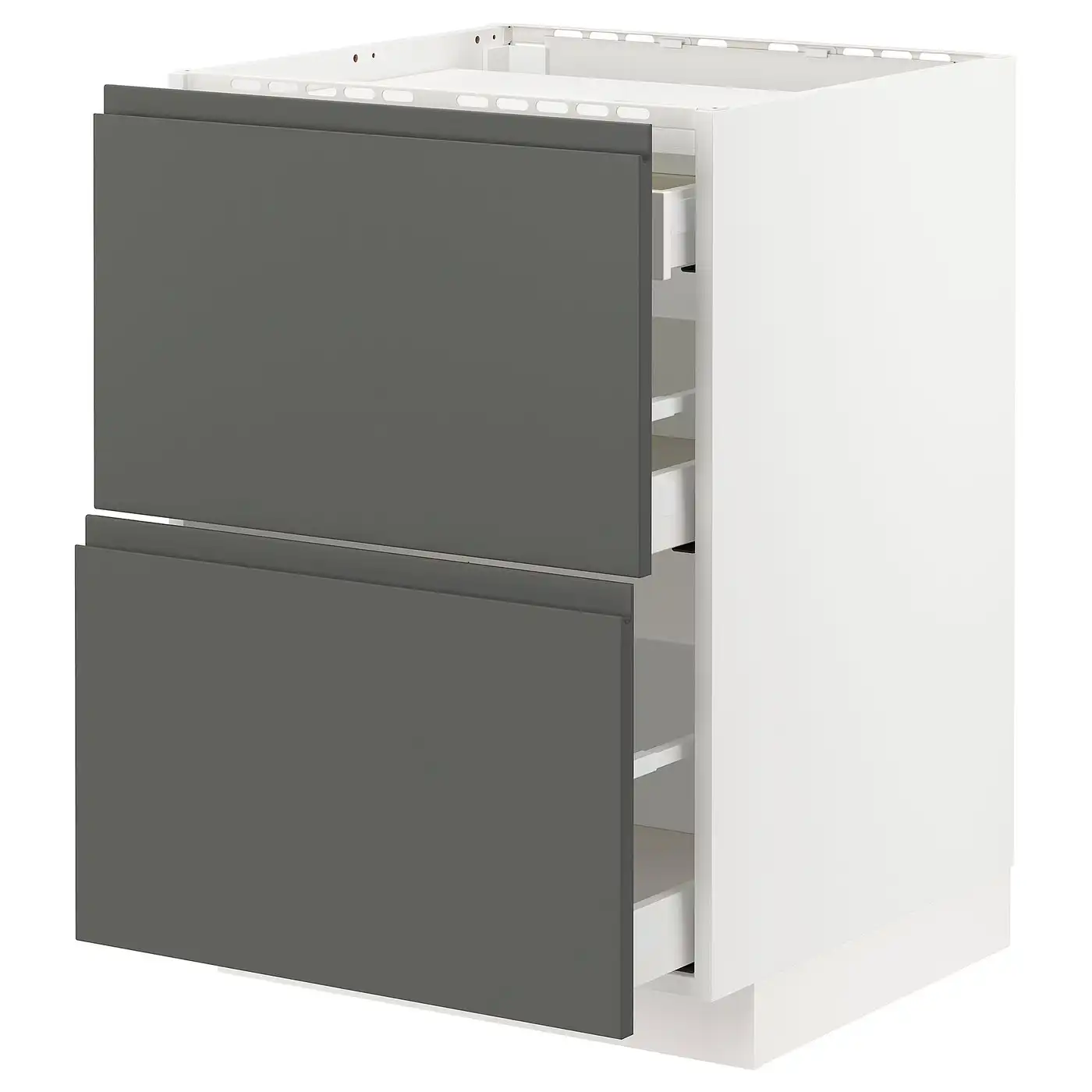 METOD / MAXIMERA Base cab f hob/2 fronts/3 drawers - white/Voxtorp dark grey 60x60 cm