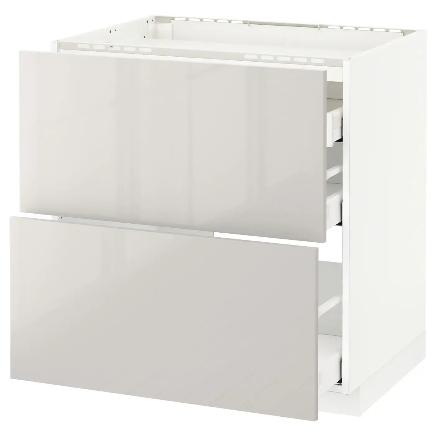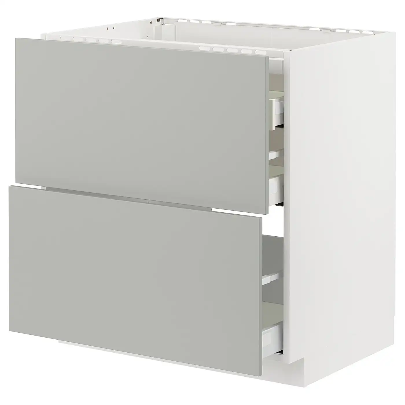 METOD / MAXIMERA Base cab f hob/2 fronts/3 drawers - white/Ringhult light grey 80x60 cm