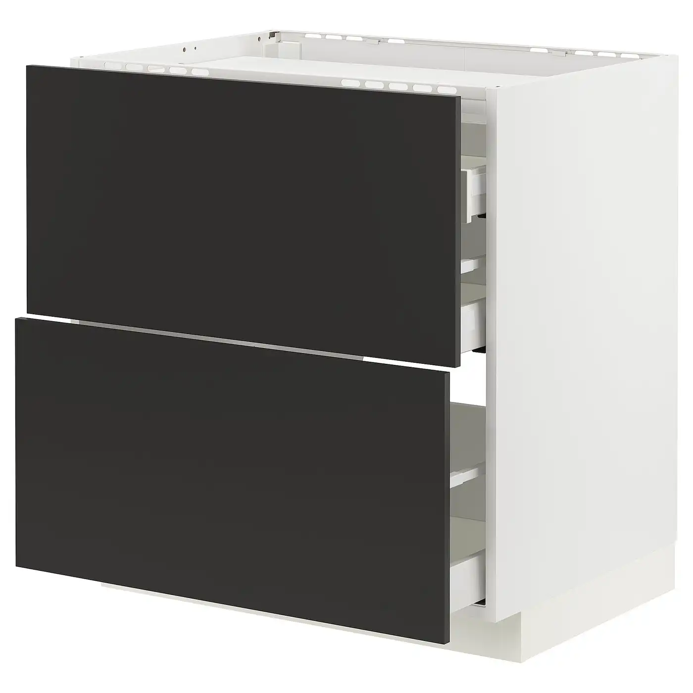 METOD / MAXIMERA Base cab f hob/2 fronts/3 drawers - white/Nickebo matt anthracite 80x60 cm