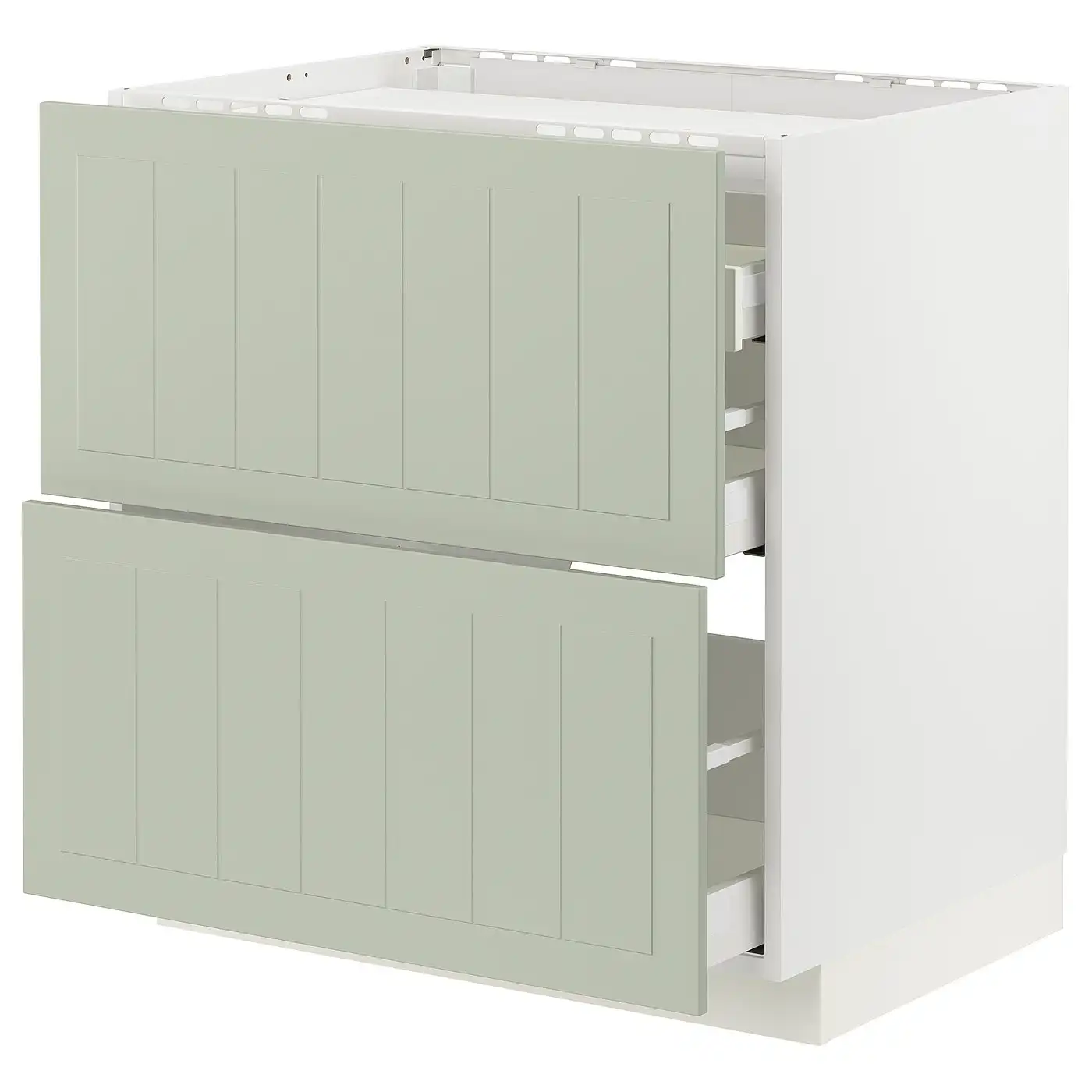 METOD / MAXIMERA Base cab f hob/2 fronts/3 drawers - white/Stensund light green 80x60 cm