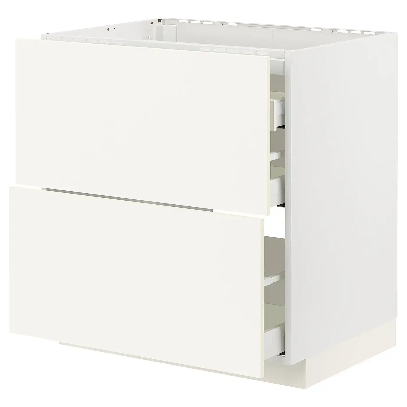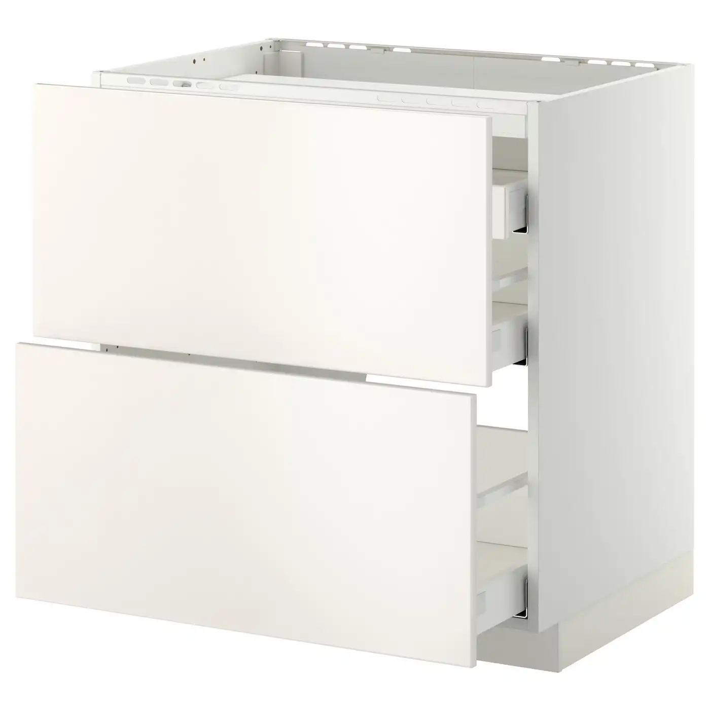 METOD / MAXIMERA Base cab f hob/2 fronts/3 drawers - white/Vallstena white 80x60 cm