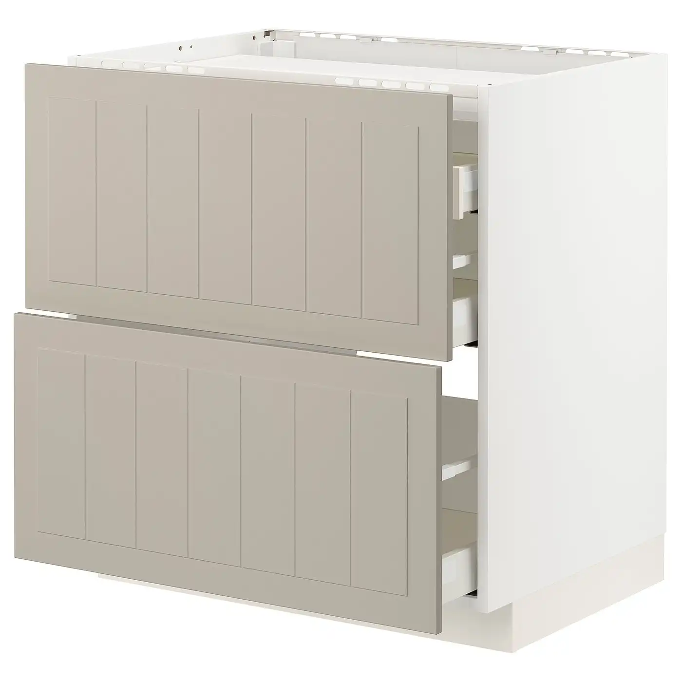 METOD / MAXIMERA Base cab f hob/2 fronts/3 drawers - white/Stensund beige 80x60 cm