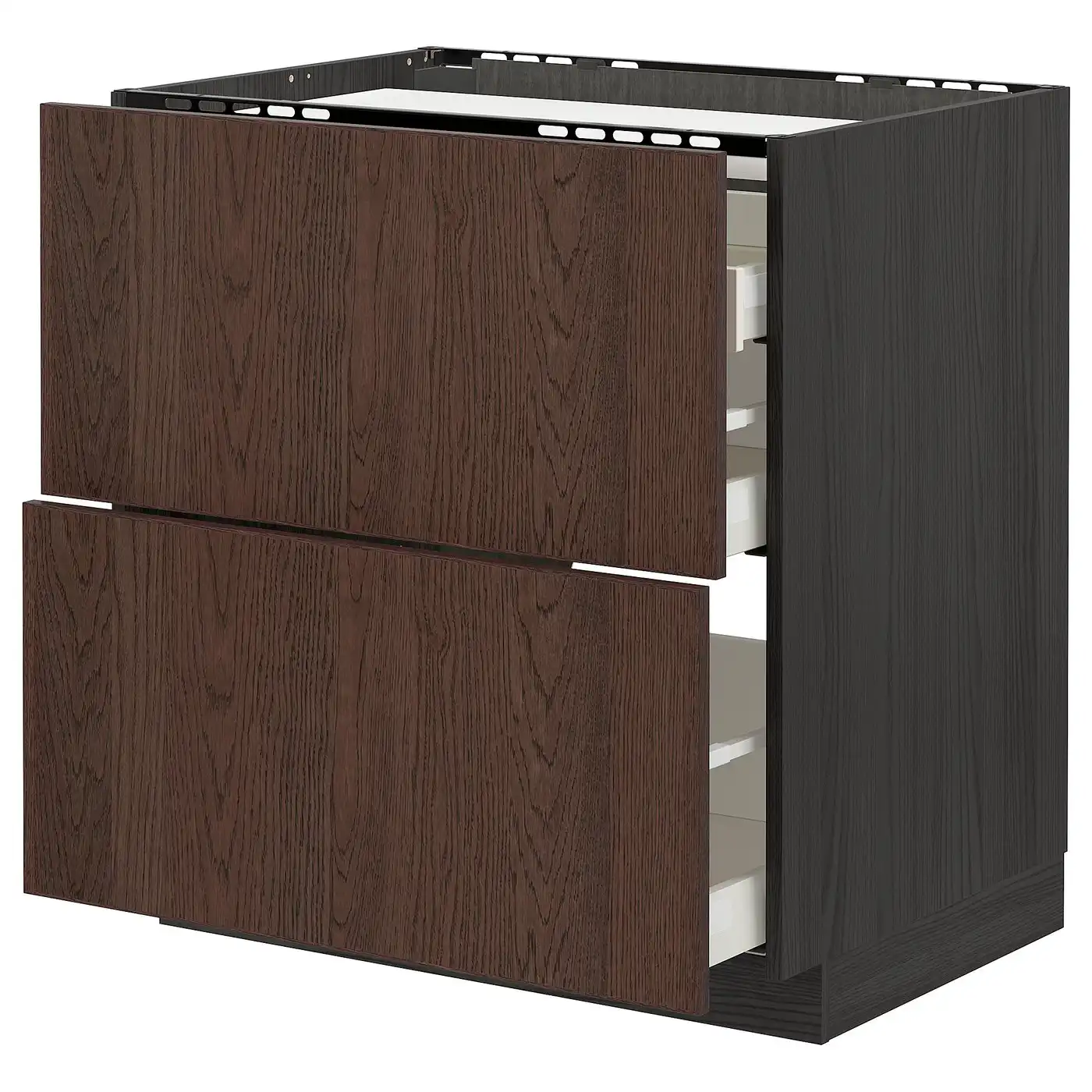 METOD / MAXIMERA Base cab f hob/2 fronts/3 drawers - black/Sinarp brown 80x60 cm
