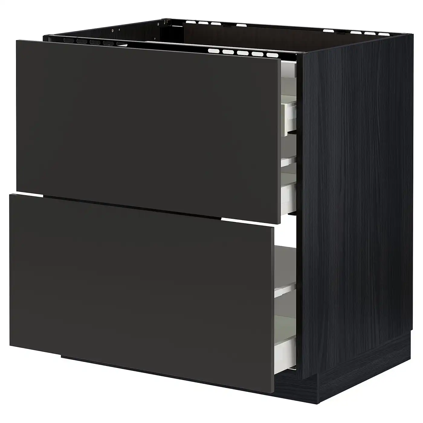 METOD / MAXIMERA Base cab f hob/2 fronts/3 drawers - black/Nickebo matt anthracite 80x60 cm