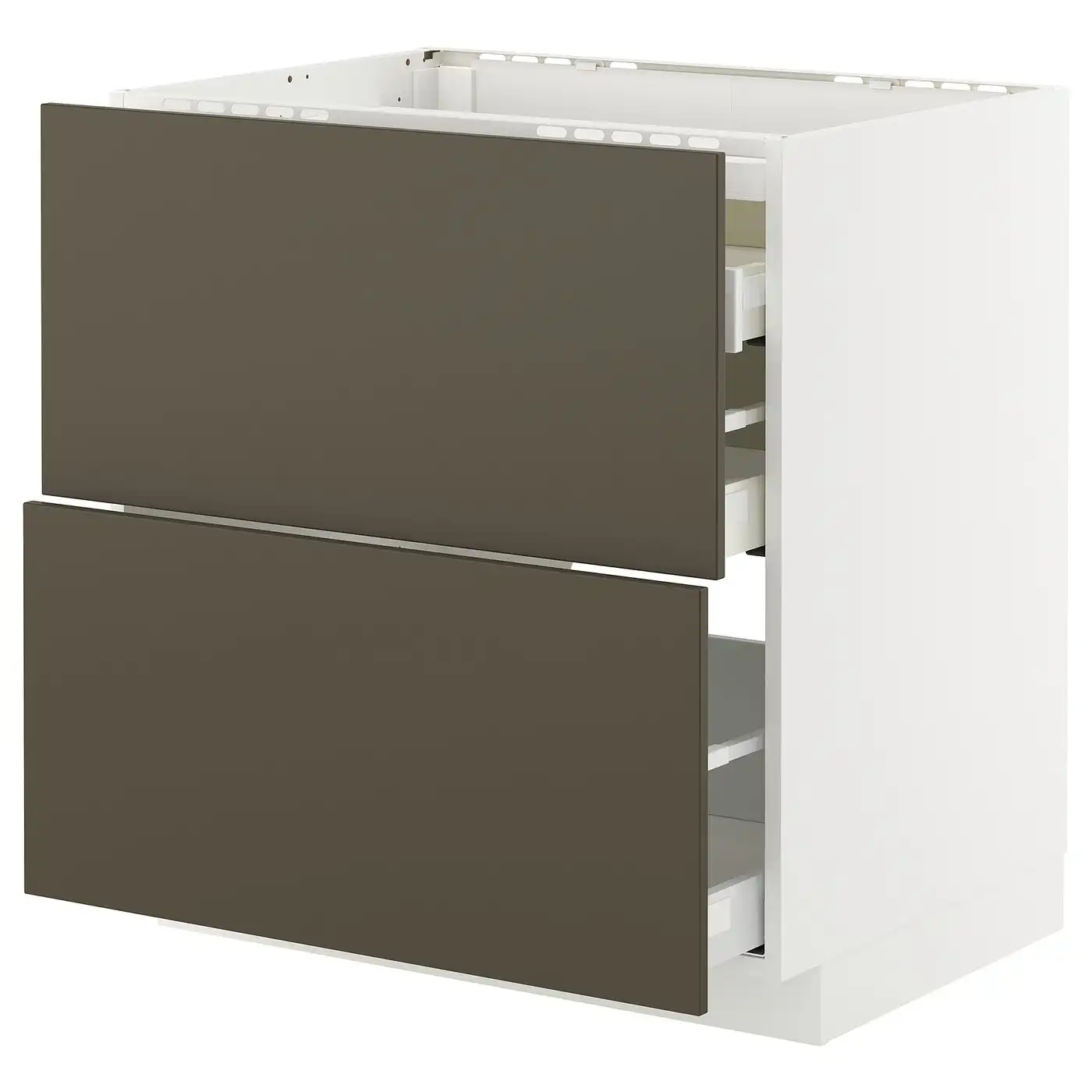 METOD / MAXIMERA Base cab f hob/2 fronts/3 drawers - white/Sinarp brown 80x60 cm