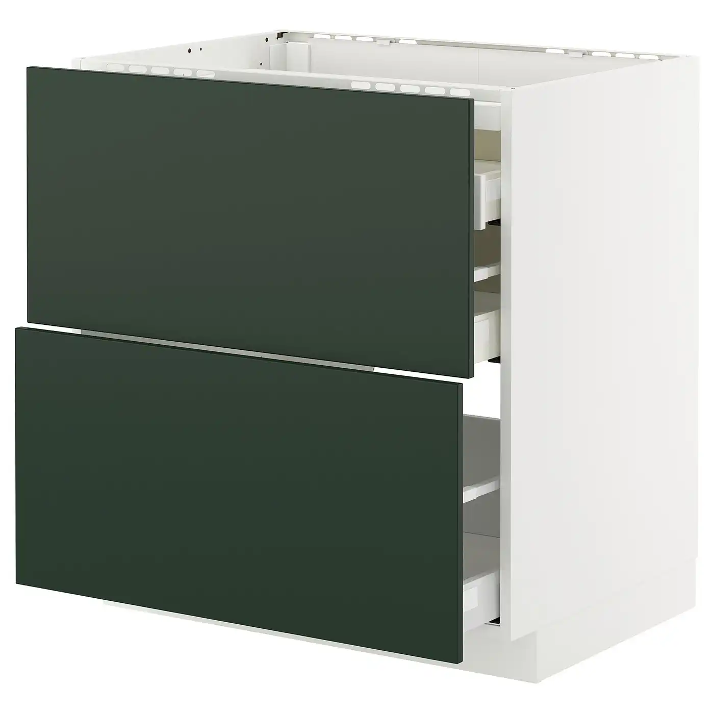 METOD / MAXIMERA Base cab f hob/2 fronts/3 drawers - white/Havstorp deep green 80x60 cm
