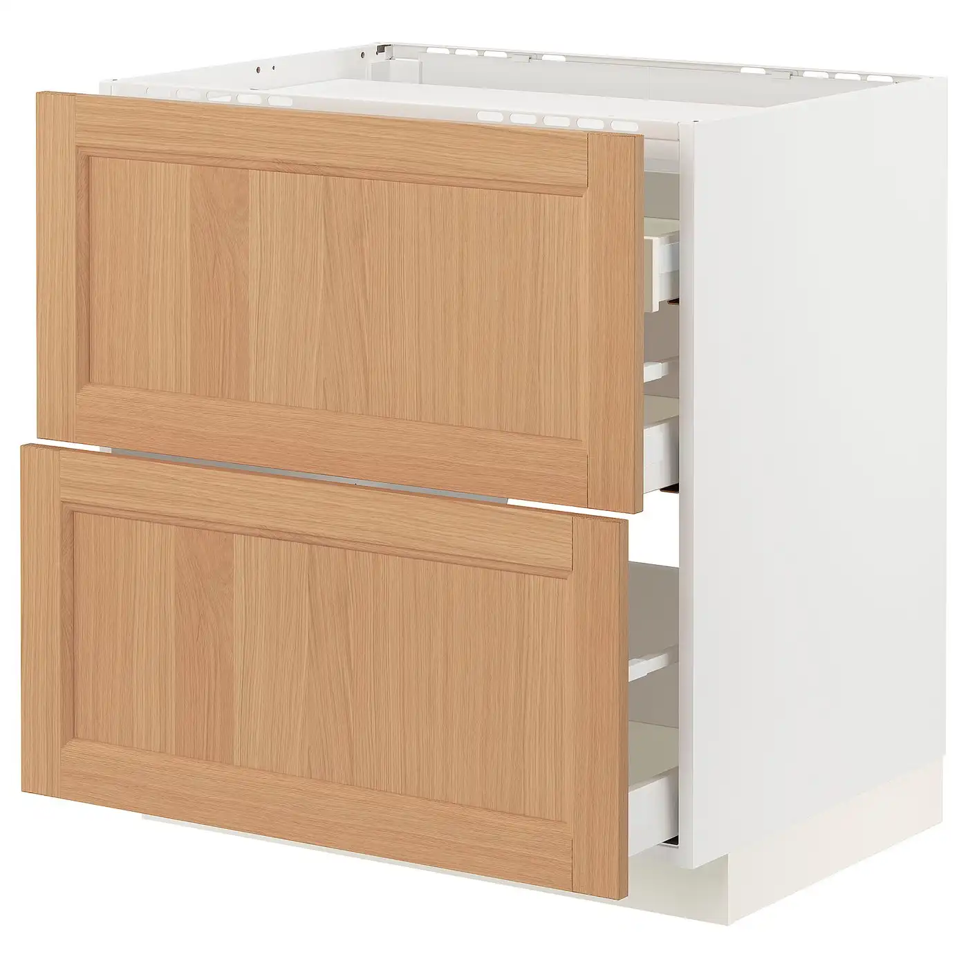 METOD / MAXIMERA Base cab f hob/2 fronts/3 drawers - white/Voxtorp oak effect 80x60 cm