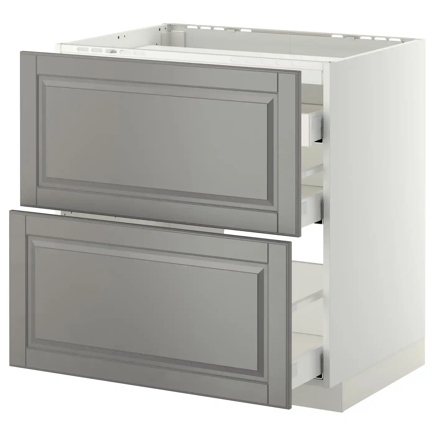 METOD / MAXIMERA Base cab f hob/2 fronts/3 drawers - white/Bodbyn grey 80x60 cm