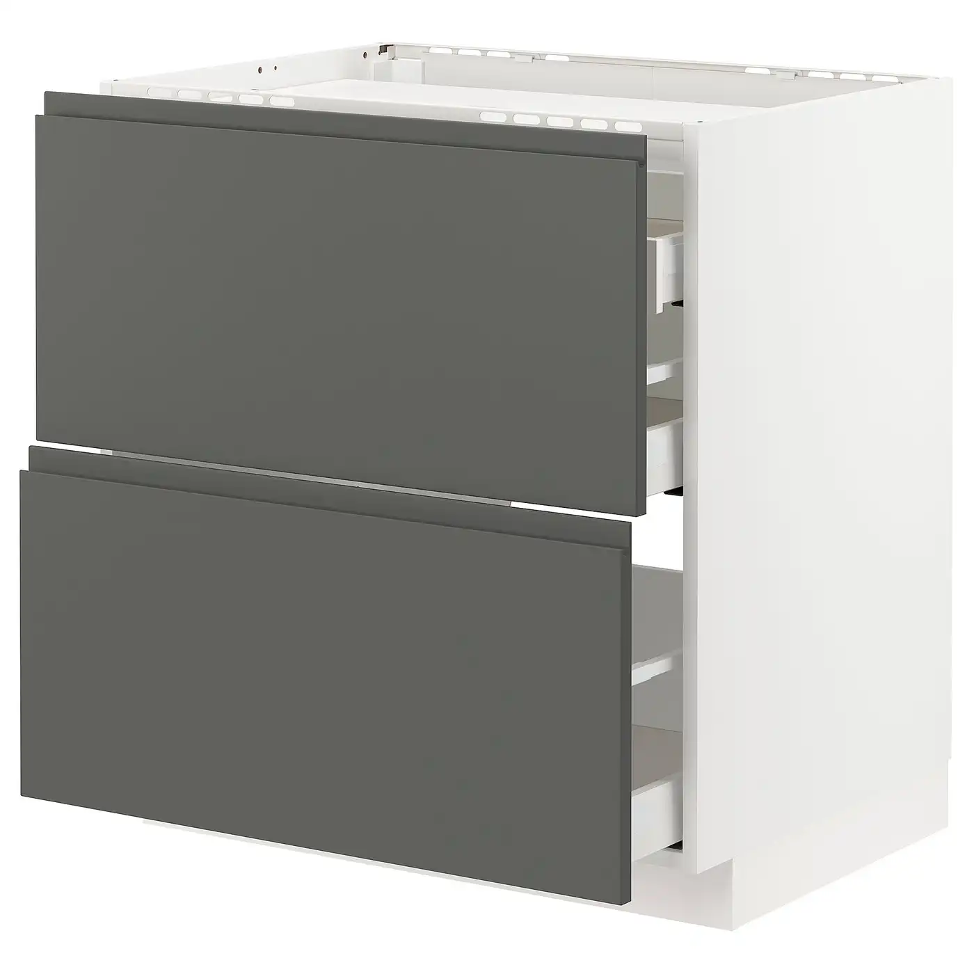 METOD / MAXIMERA Base cab f hob/2 fronts/3 drawers - white/Voxtorp dark grey 80x60 cm