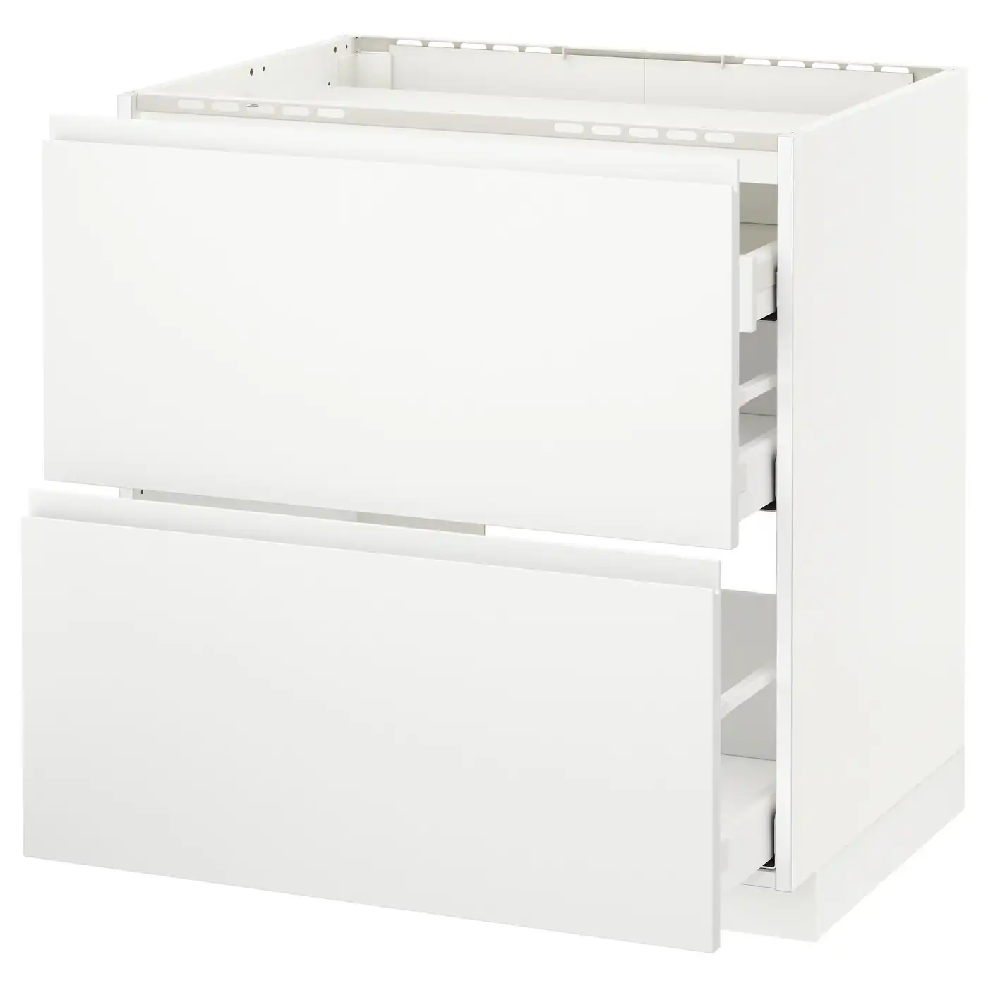 METOD / MAXIMERA Base cab f hob/2 fronts/3 drawers - white/Voxtorp matt white 80x60 cm
