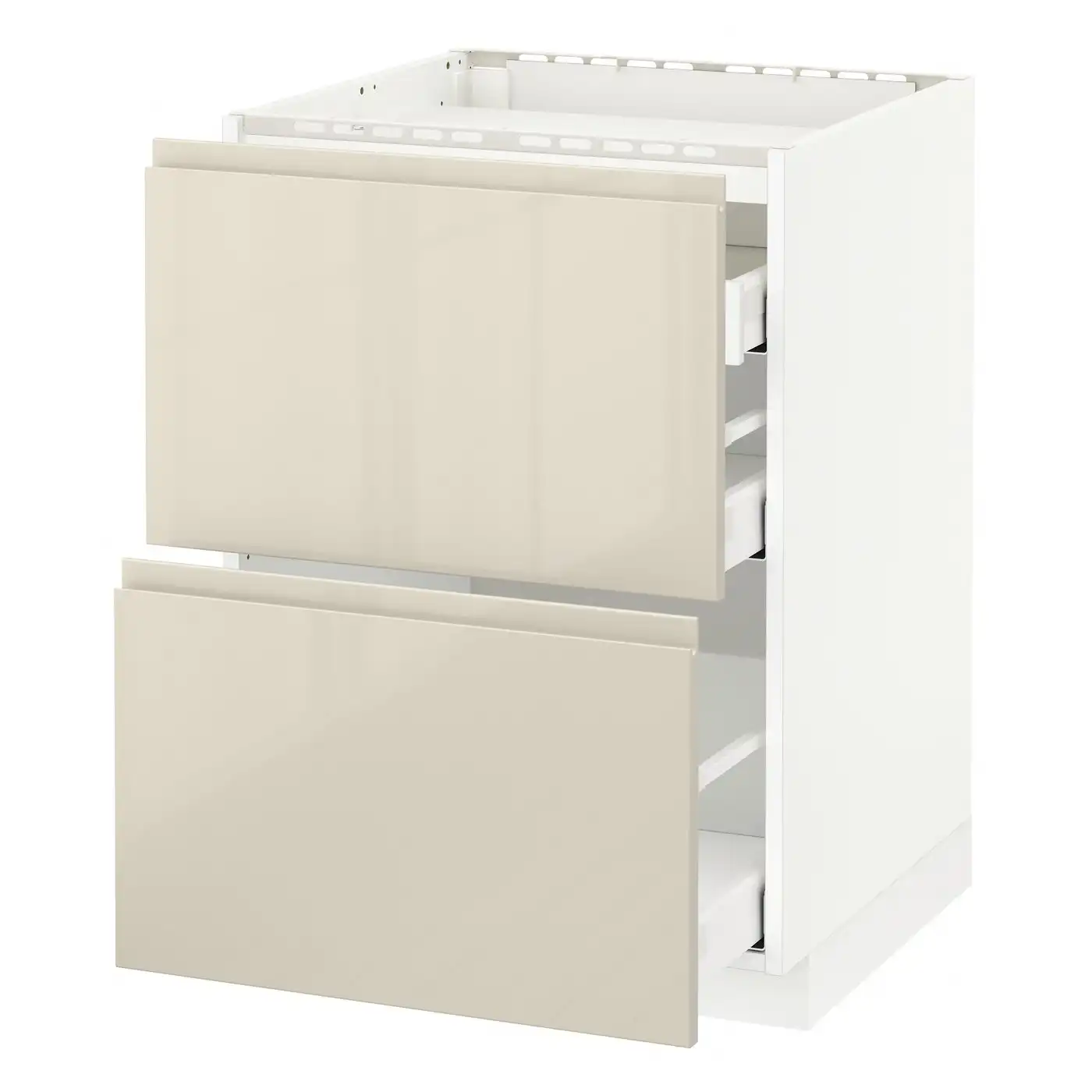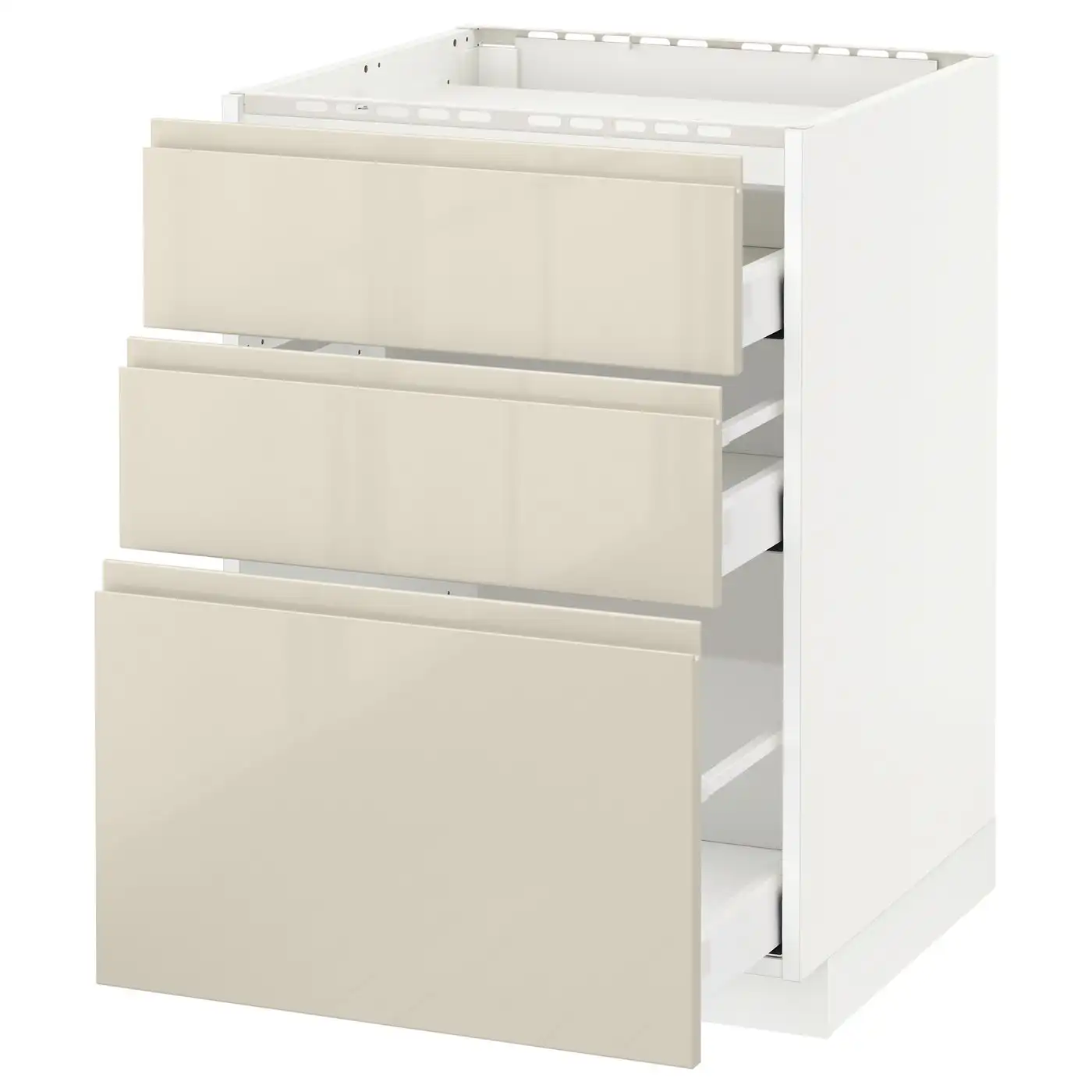 Compare all IKEA METOD Base cabinet for hob with 3 drawers 60x60 cm MAXIMERA white/VOXTORP High-gloss light beige prices
