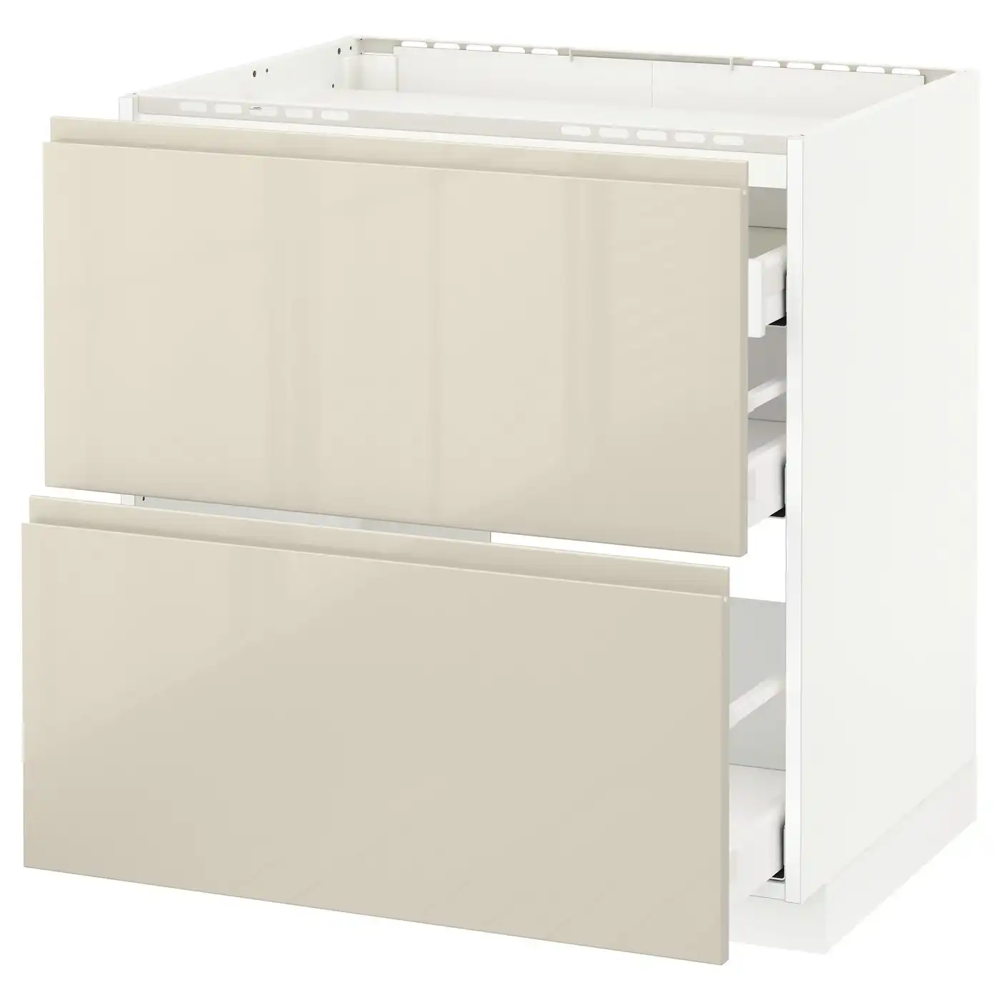 METOD / MAXIMERA Base cab f hob/2 fronts/3 drawers - white/Voxtorp high-gloss light beige 80x60 cm