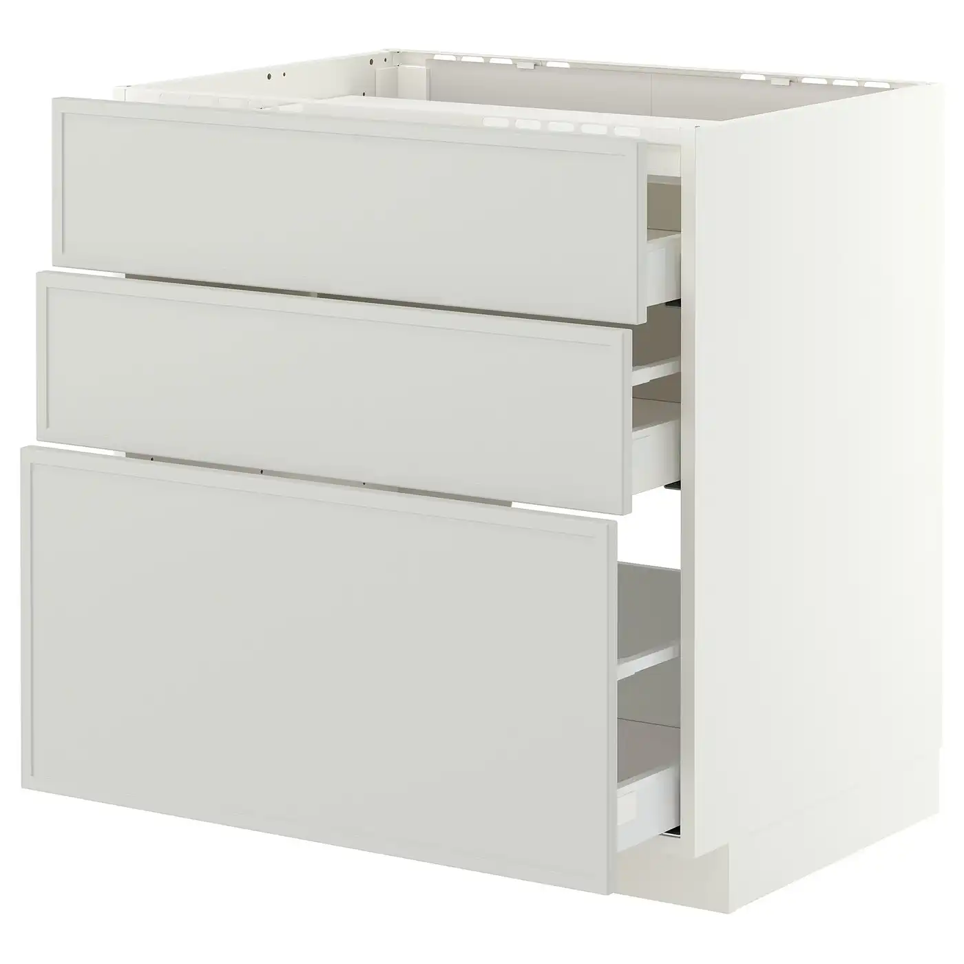 METOD / MAXIMERA Base cab f hob/3 fronts/3 drawers - white/Aspudden light grey 80x60 cm