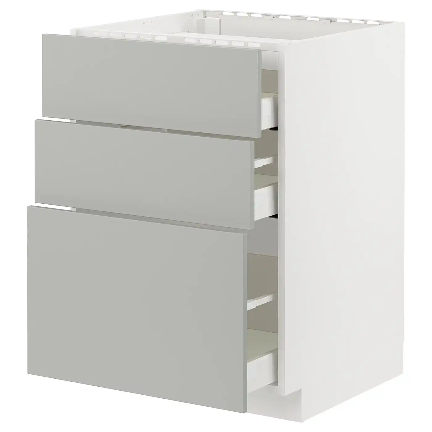 METOD / MAXIMERA Base cab f hob/3 fronts/3 drawers - white/Havstorp light grey 60x60 cm