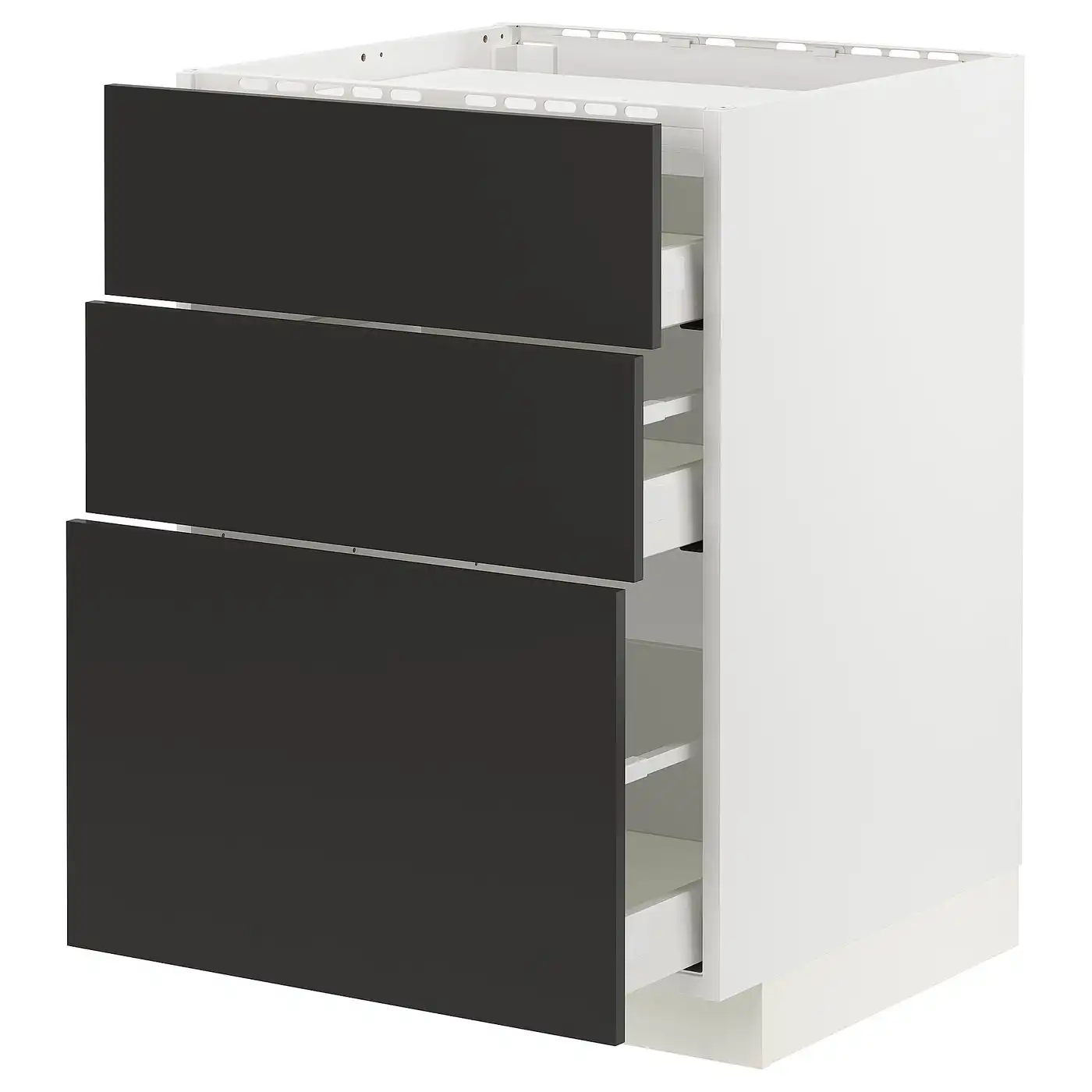 METOD / MAXIMERA Base cabinet with 3 drawers - white/Nickebo matt anthracite 60x60 cm