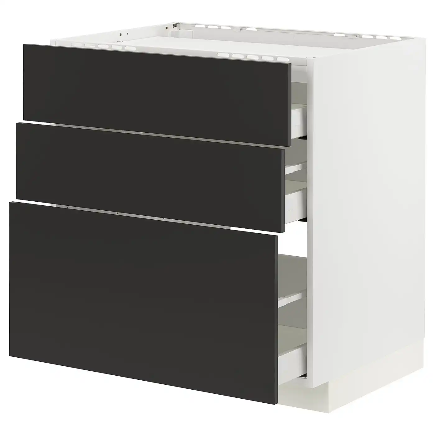 METOD / MAXIMERA Base cab f hob/3 fronts/3 drawers - white/Nickebo matt anthracite 80x60 cm