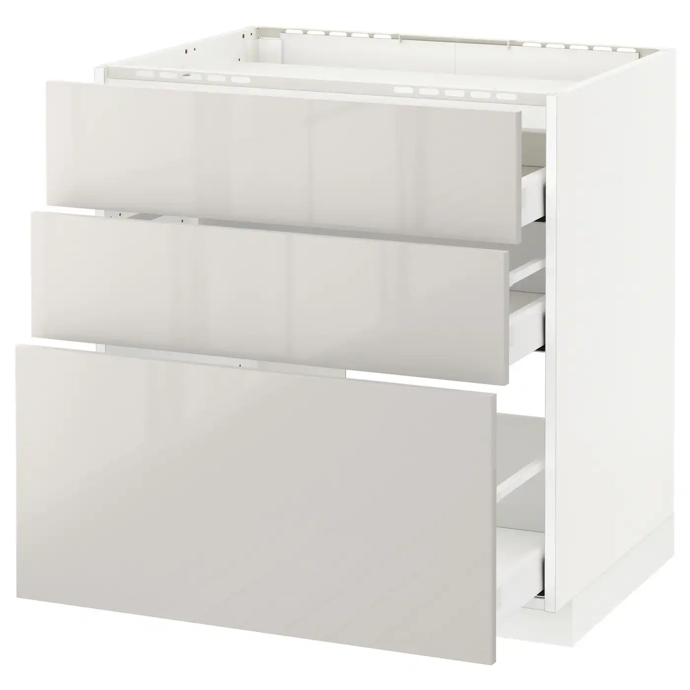 METOD / MAXIMERA Base cabinet with 3 drawers - white/Ringhult light grey 80x60 cm