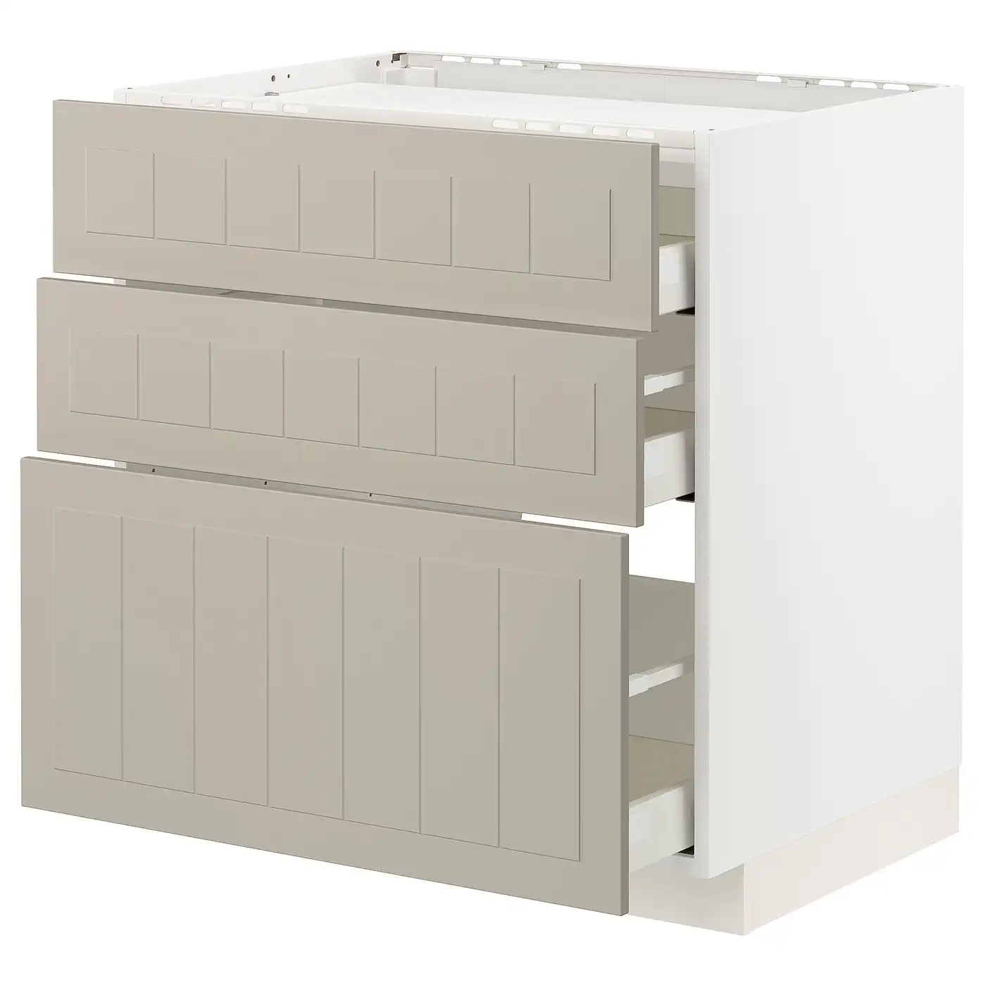 METOD / MAXIMERA Base cab f hob/3 fronts/3 drawers - white/Stensund beige 80x60 cm
