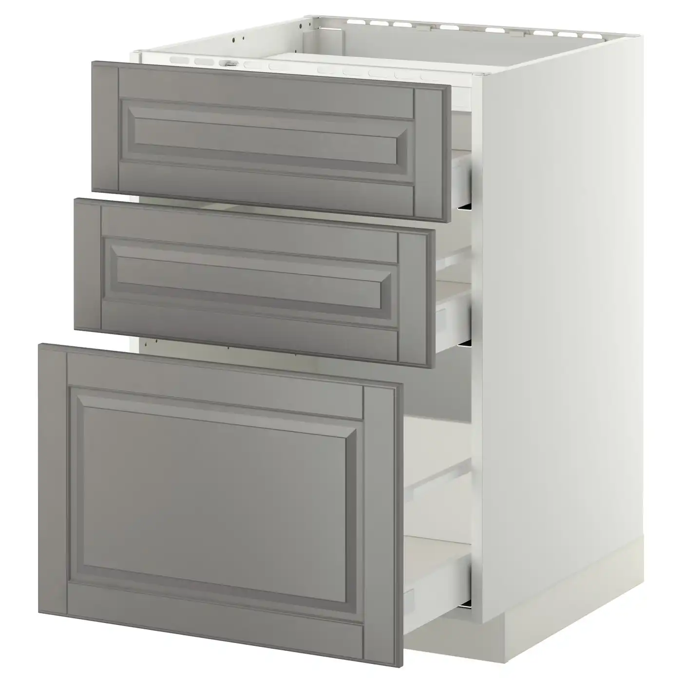 METOD / MAXIMERA Base cab f hob/3 fronts/3 drawers - white/Bodbyn grey 60x60 cm