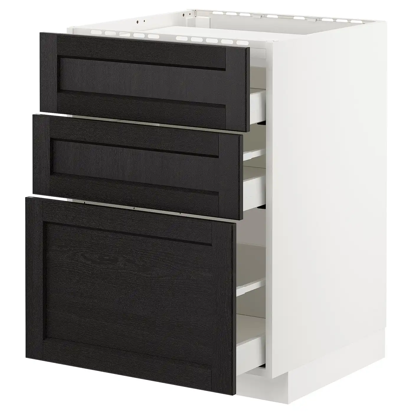 METOD / MAXIMERA Base cab f hob/3 fronts/3 drawers - white/Lerhyttan black stained 60x60 cm