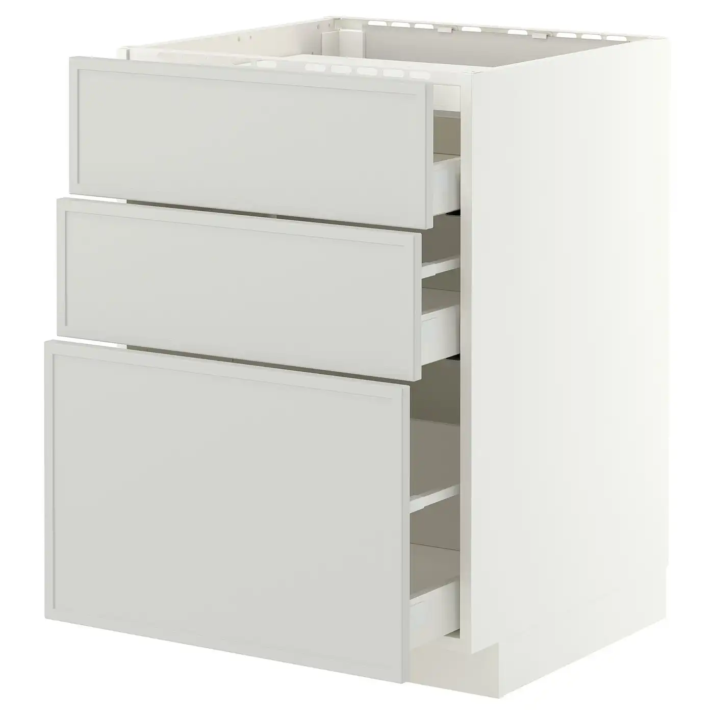 METOD / MAXIMERA Base cab f hob/3 fronts/3 drawers - white/Ringhult light grey 60x60 cm