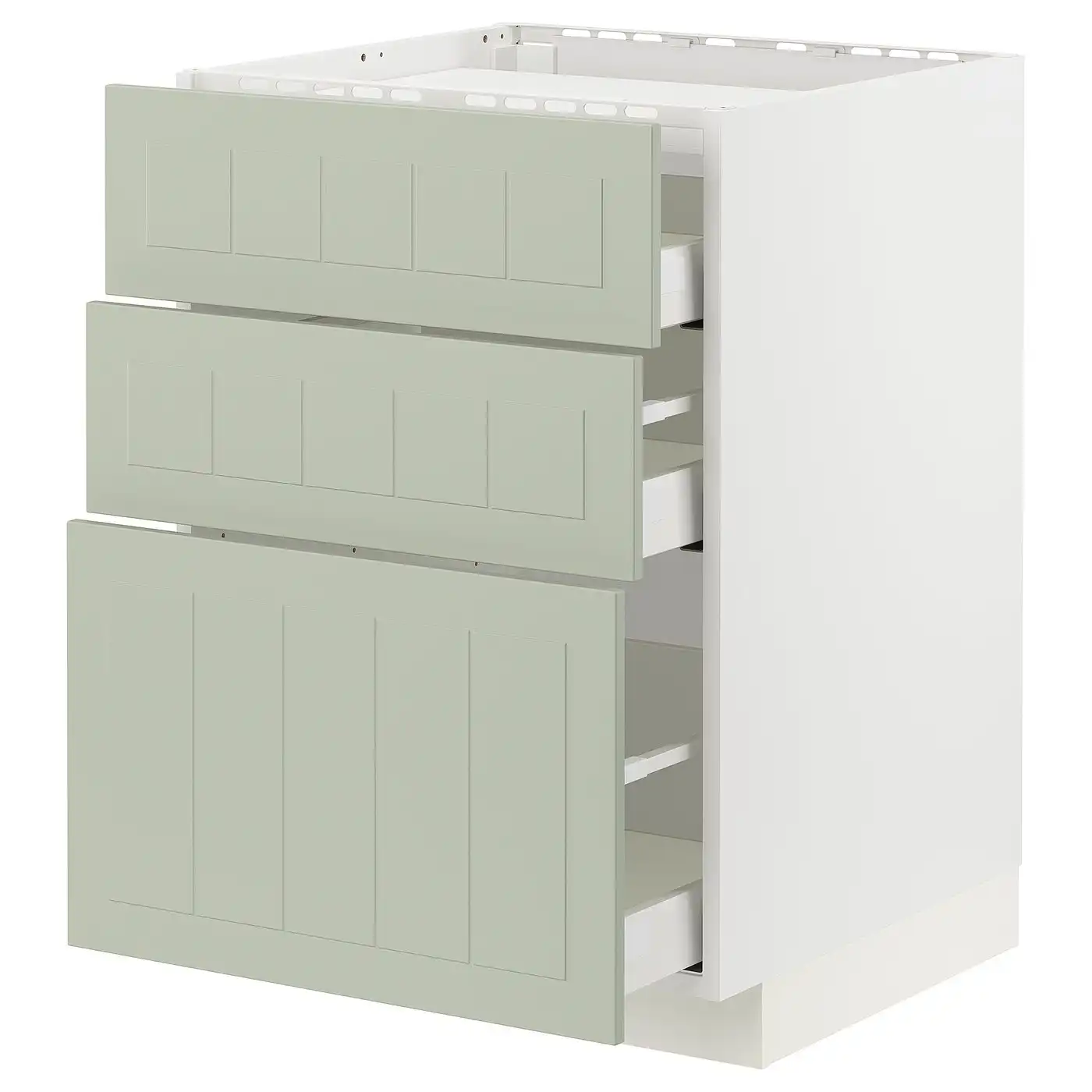 METOD / MAXIMERA Base cab f hob/3 fronts/3 drawers - white/Stensund light green 60x60 cm
