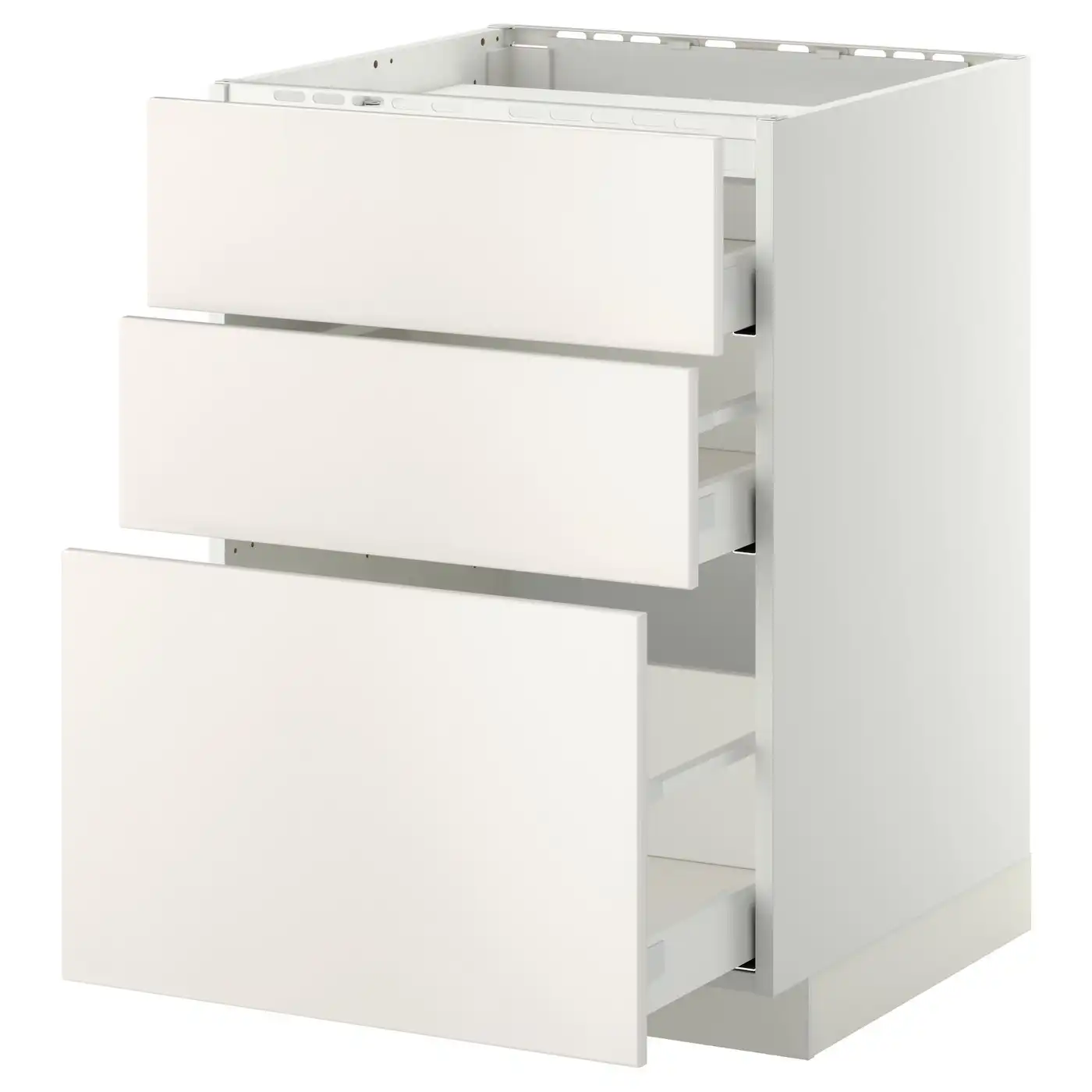 METOD / MAXIMERA Base cab f hob/3 fronts/3 drawers - white/Veddinge white 60x60 cm