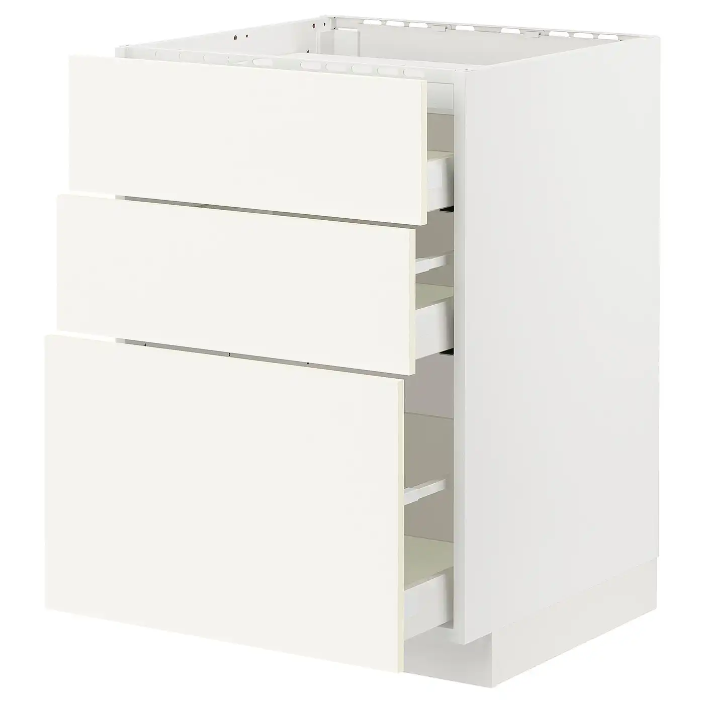 METOD / MAXIMERA Base cab f hob/3 fronts/3 drawers - white/Vallstena white 60x60 cm