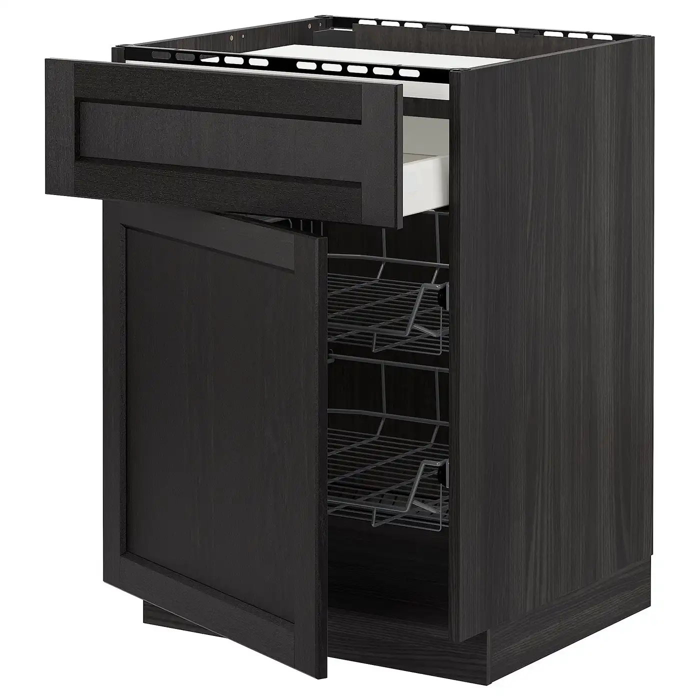 IKEA METOD Base cabinet for hob with 2 wire baskets and drawer 60x60 cm MAXIMERA black/LERHYTTAN black stained