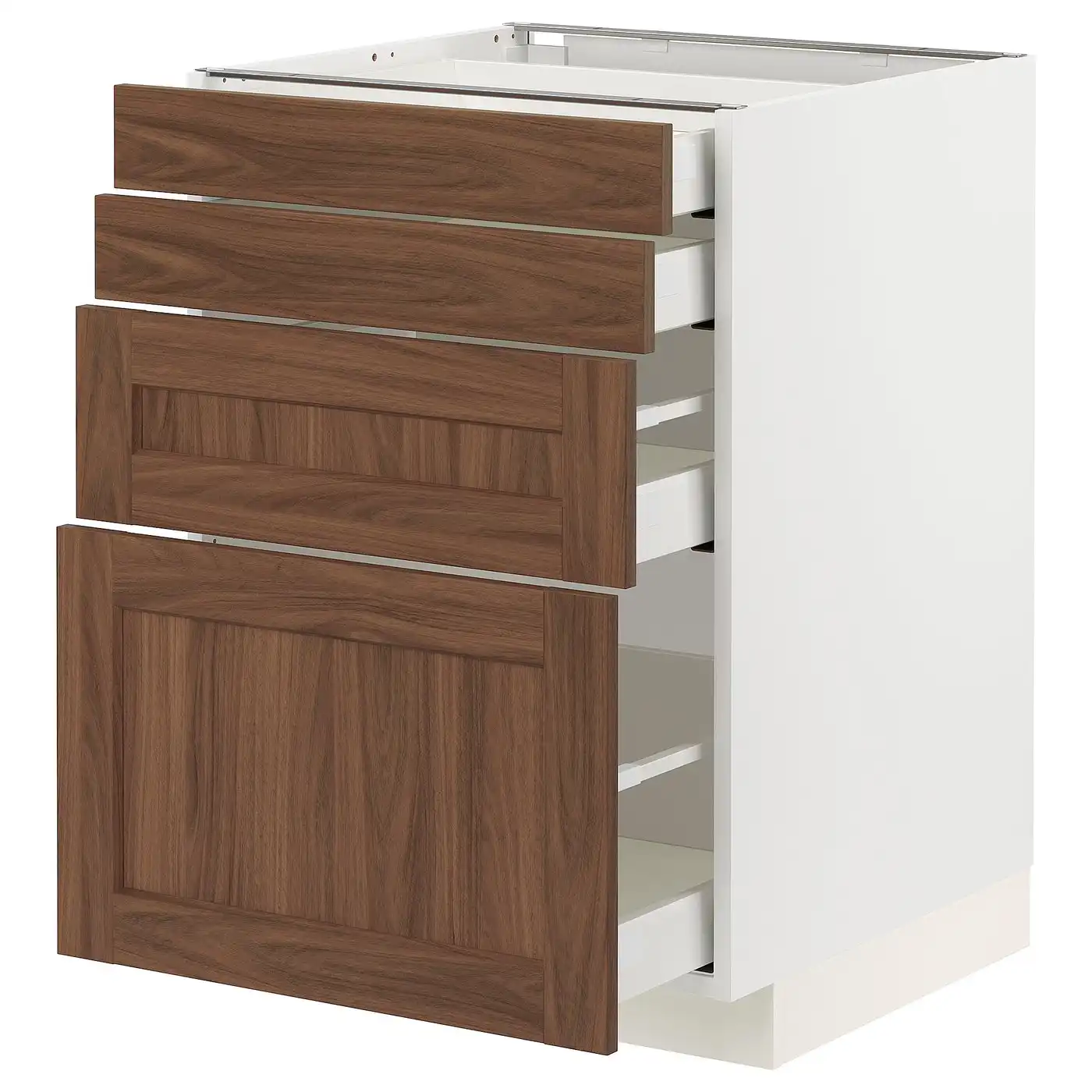 METOD / MAXIMERA Base cab 4 frnts/4 drawers - white Enköping/brown walnut effect 60x60 cm